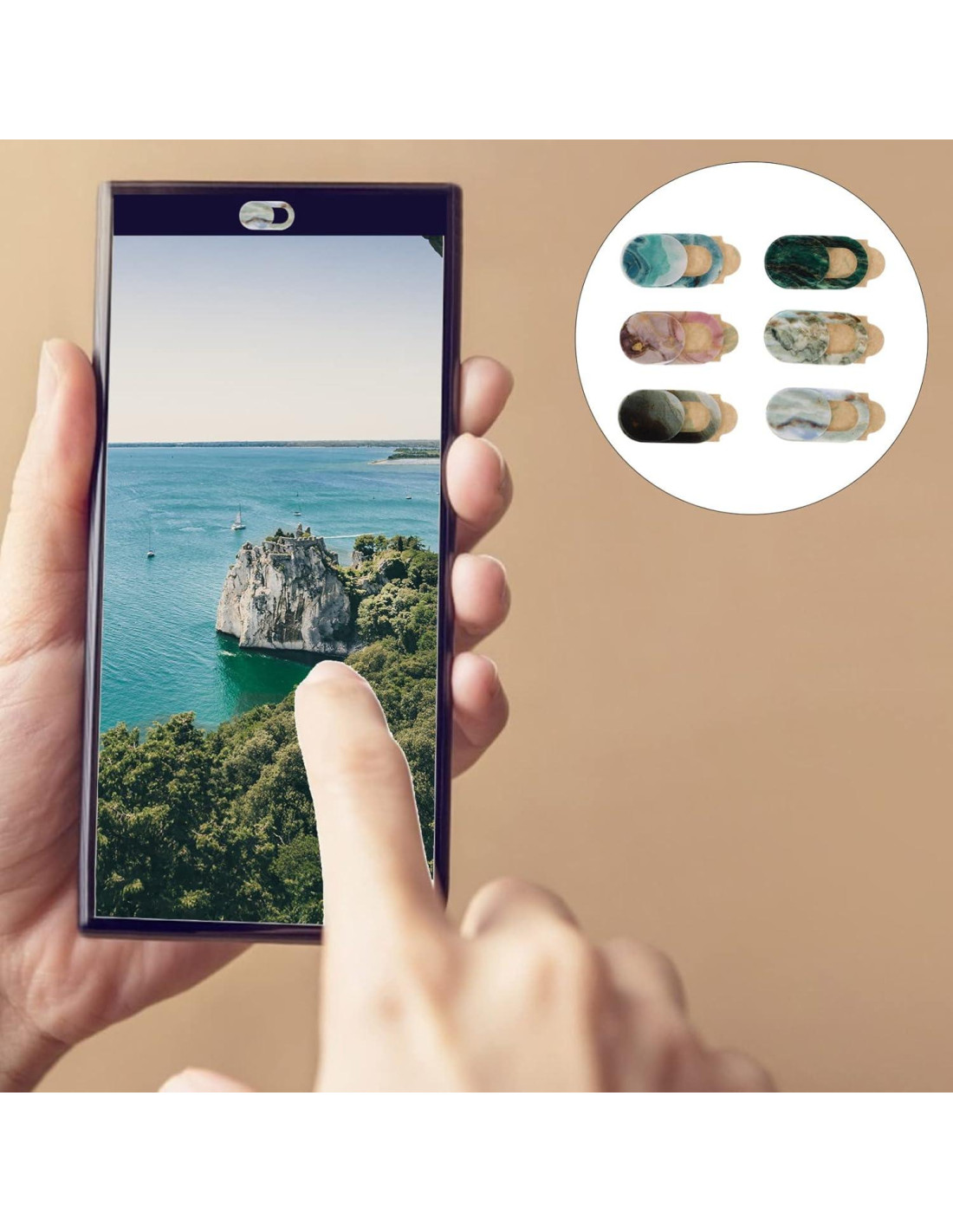Descripción 6pcs Cubierta de Webcam Cubierta de Cámara de Mármol Deslizante para PC Tableta Portátil Características - Color: Como se muestra; - Material: ABS; - Tamaño: Aproximadamente 1.50X1.00X0.10cm; Paquete Incluyendo 6 x cubiertas de cámara