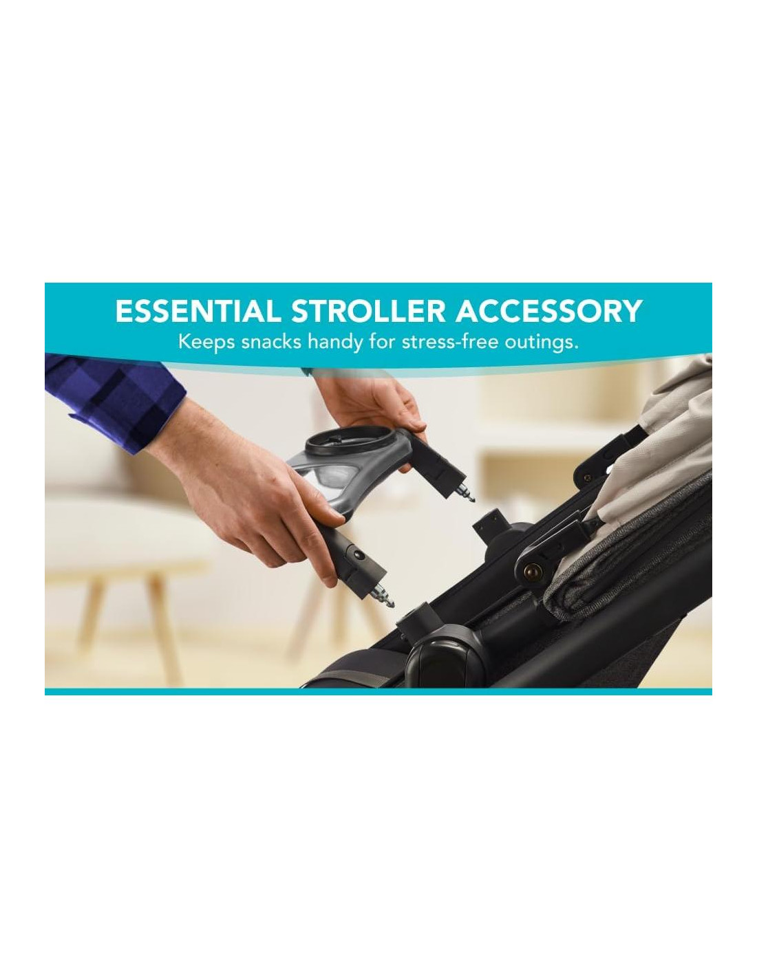 - Bocadillos Fáciles al Alcance: Nuestra bandeja de snack universal para cochecito cuenta con un portavasos moldeado que acomoda vasos de entrenamiento y cajas de jugo de varios tamaños. No hay necesidad de buscar bocadillos o bebidas cuando todo está al alcance de tus dedos.