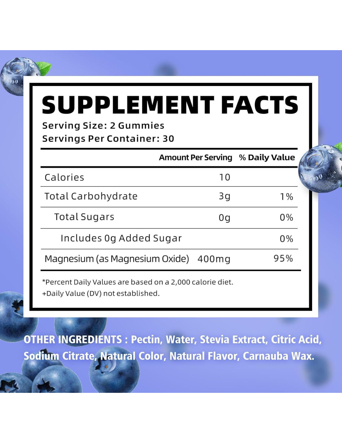 - Óxido de Magnesio 400mg: Nuestras gomitas de magnesio contienen óxido de magnesio 400 mg por porción. Estas gomitas de óxido de magnesio ofrecen una forma conveniente y deliciosa de satisfacer sus necesidades diarias de magnesio