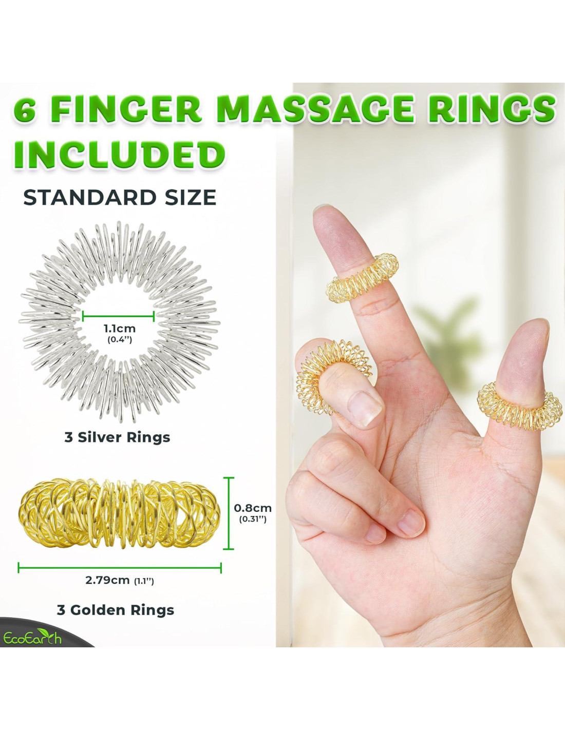 ¡Experimenta el alivio definitivo del dolor y la rigidez en las articulaciones de los dedos con el Rodillo de Masaje para Dedos EcoEarth! Esta innovadora herramienta de masaje de doble cara está diseñada para apuntar con precisión y proporcionar un masaje de tejido profundo que alivia eficazmente la artritis, el síndrome del túnel carpiano y la tensión inducida por el estrés, mientras mejora la circulación sanguínea y libera la tensión. El diseño antideslizante lo hace increíblemente fácil de usar todos los días, mientras que su tamaño compacto y amigable para viajar te ayuda a llevarlo contigo a donde quiera que vayas. El juego de masaje para dedos y manos de 7 piezas cuenta con 6 anillos de masaje para dedos, diseñados para revitalizar tus dedos a través de la acupresión. Sin necesidad de baterías ni ensamblaje y con instrucciones para el usuario incluidas, estas herramientas de masaje para dedos y manos son la opción preferida para profesionales ocupados que necesitan masajes rápidos. Ya sea que estés en casa o en movimiento, dale a tus dedos, manos y palmas la relajación y el cuidado que merecen con EcoEarth.