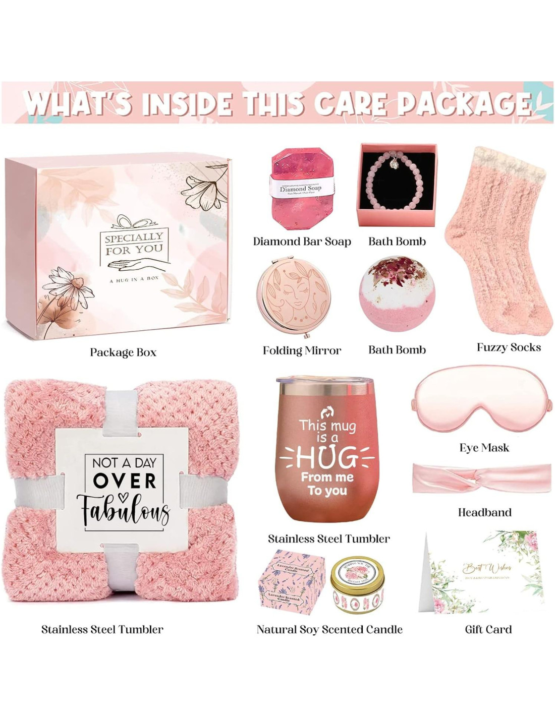 - [Perfecto para Cualquier Ocasión & Curado Especialmente] - Este regalo considerado es perfecto para cualquier ocasión. Puede usarse como un regalo de mejorate pronto, regalo de apoyo emocional, regalo para amigos, regalo de jubilación, regalo de hospital, regalo de cuidado personal, regalo de condolencias, regalo de agradecimiento, regalo del Día de la Madre, regalo de Acción de Gracias, regalo de cumpleaños y regalo de Navidad. Esta Canasta de Regalo ha sido cuidadosamente preparada con el objetivo de reconfortar y calentar a la dama especial en tu vida. Es un regalo ideal para mostrar que te importa.