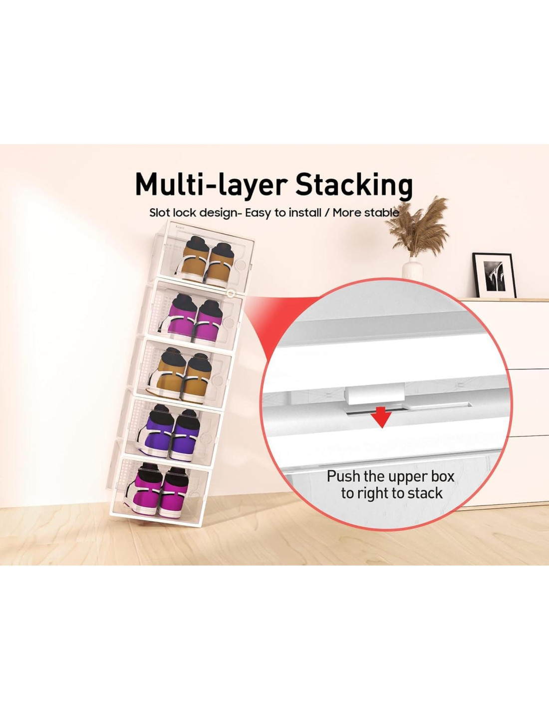 - Diseño de Apilamiento Multicapa: Diseño de apilamiento mejorado, solo unos segundos pueden apilar las cajas de almacenamiento de zapatos