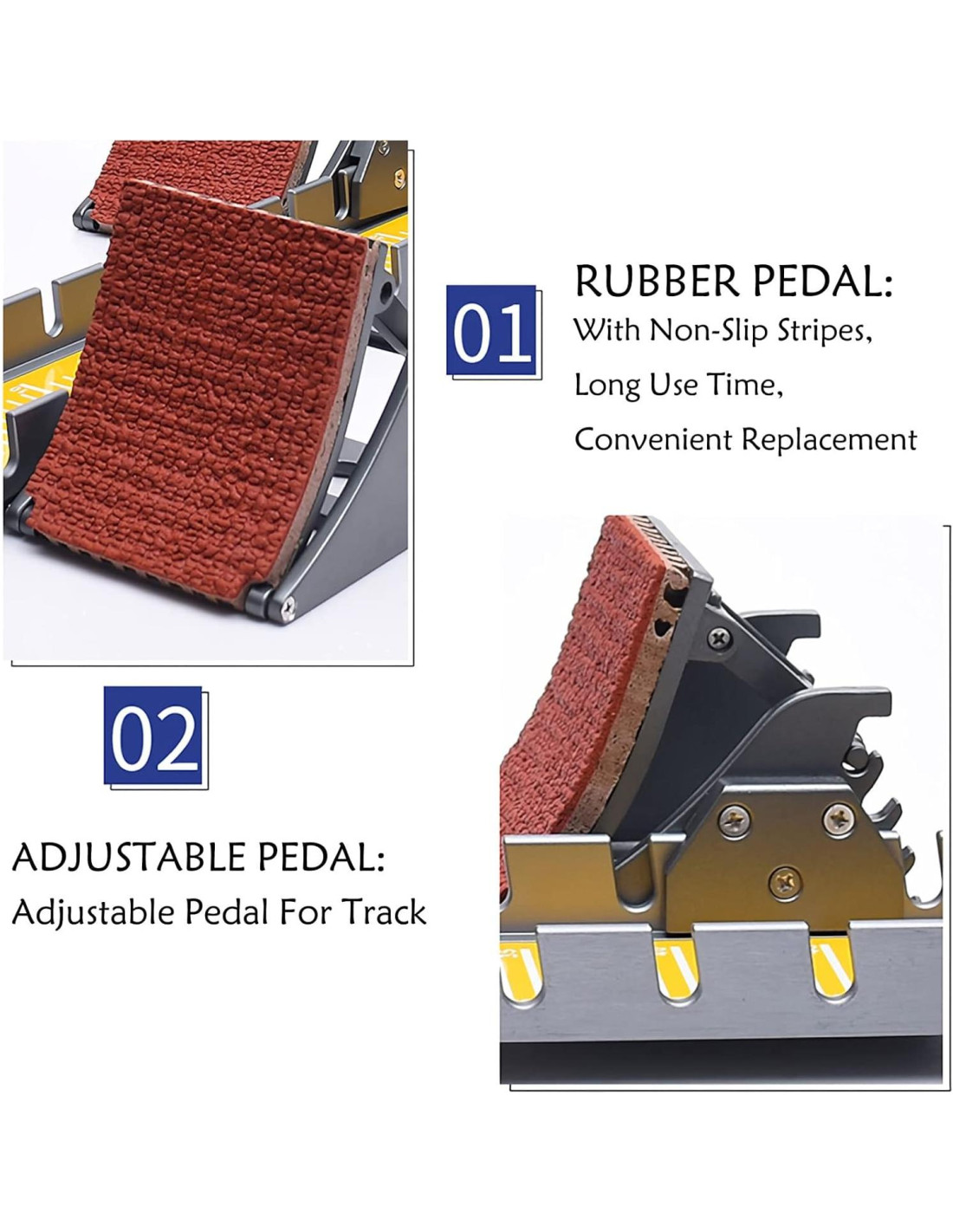 - Ajustable y Estable: Bloque de salida profesional de aleación de aluminio con almohadillas de goma gruesas. Presenta canales roscados, los ángulos de los pedales se pueden ajustar fácilmente.