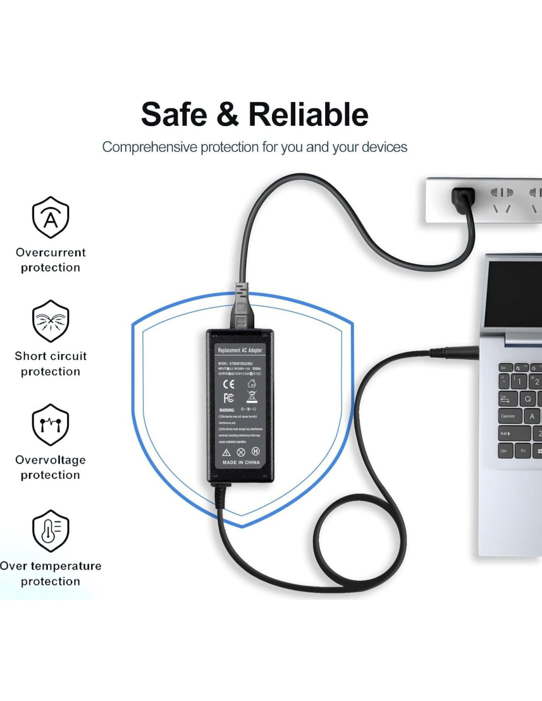El adaptador de laptop Vinperny es un adaptador seguro y confiable. Cuenta con un cable de alimentación con mayor flexibilidad y un adaptador con seguridad y estabilidad. Protección múltiple; Protección contra sobretensión; Protección contra cortocircuitos