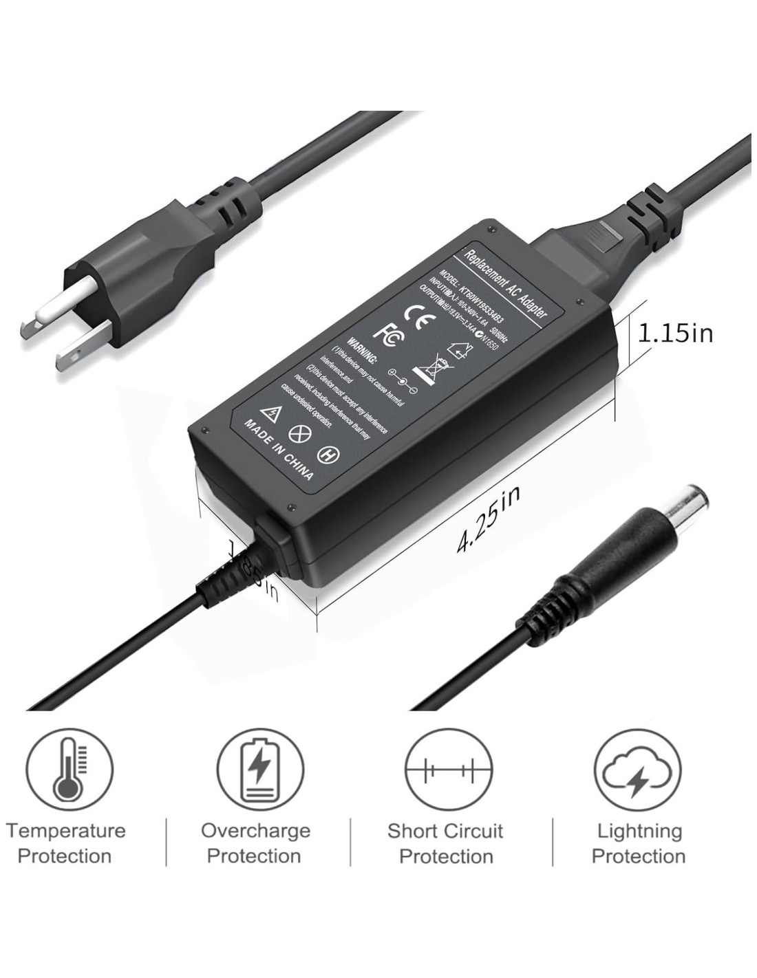 - Entrada: 100-240V~1.6A 50-60Hz Salida: 19.5V-3.34A Vatios: 65 Vatios (compatible con 45W) Punta del conector: 7.4*5.0mm