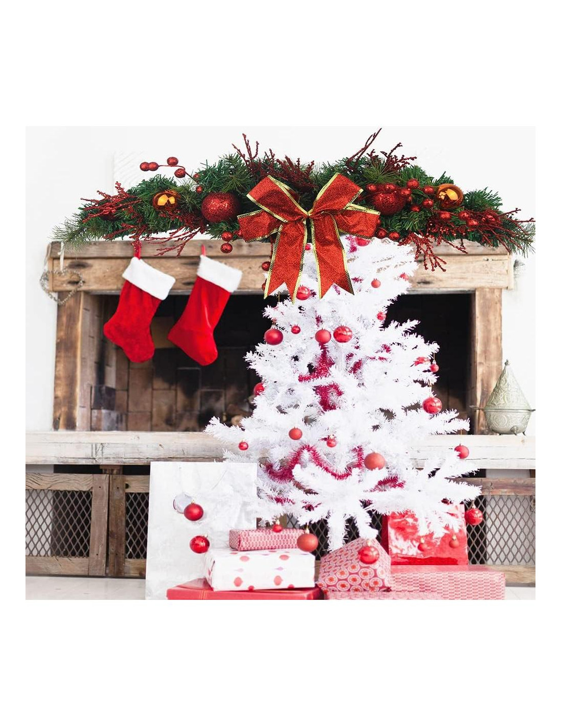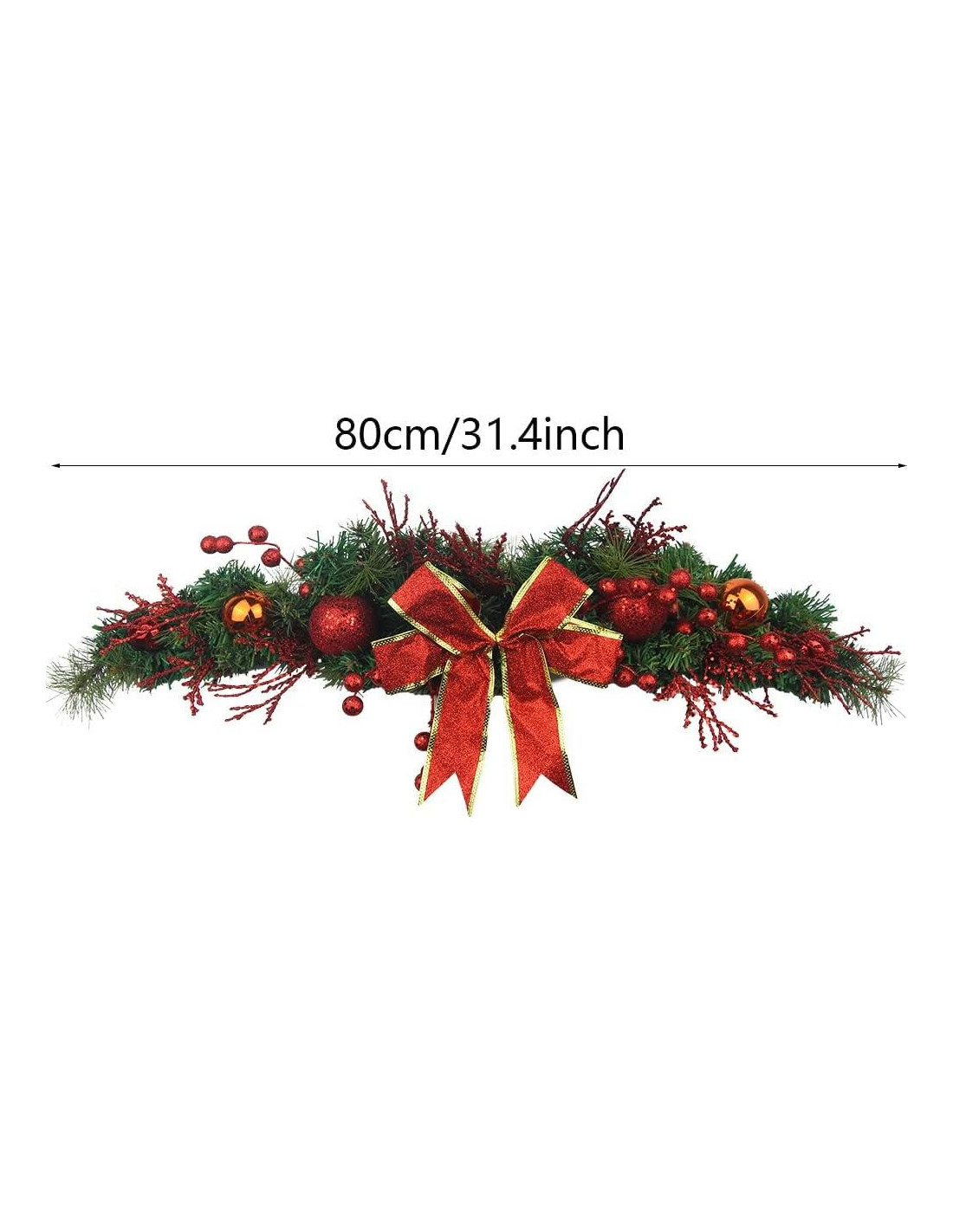 - Los swags navideños para decorar miden 80 cm (31.4 pulgadas) de largo y 20 cm (7.87 pulgadas) de ancho, proporcionando mejores efectos visuales para tus diversas decoraciones. La suavidad es que el alambre puede hacer cualquier forma que necesites y colocarlo en diferentes lugares para mostrar un encanto único.