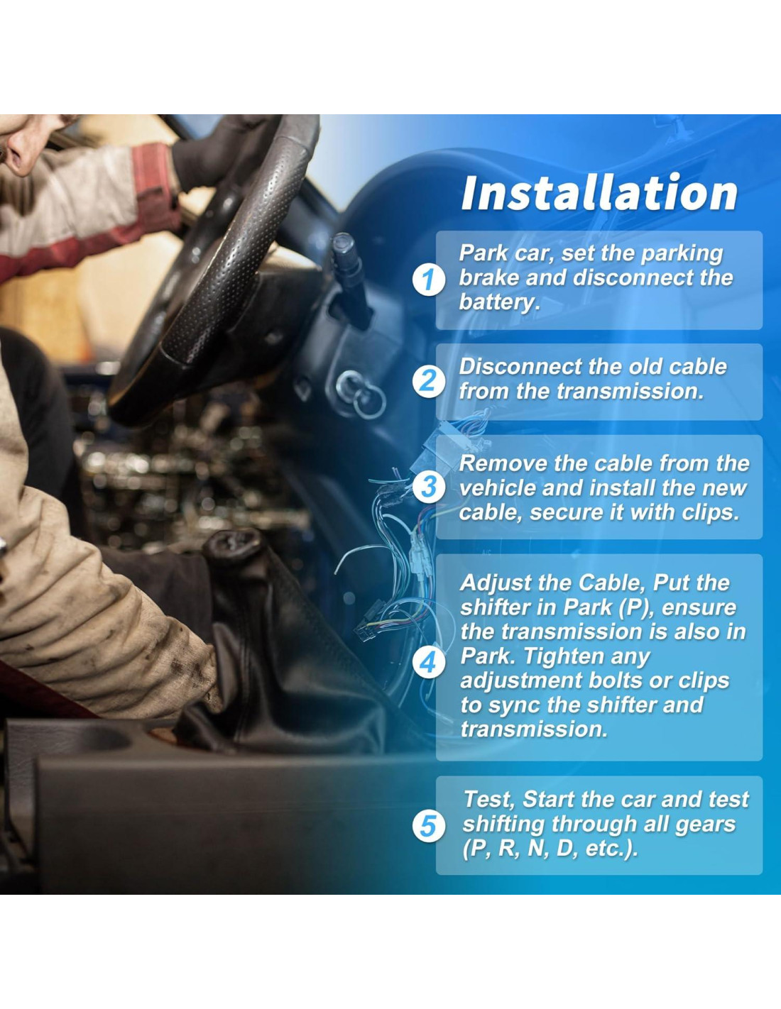 - [Paquete] Incluye 1x Cable de Cambio de Transmisión Automática. Reemplace el Ensamblaje del Cable de Control de Palanca de Rango a tiempo para tener una buena conducción, por favor revise el video de instalación profesional si tiene dudas.