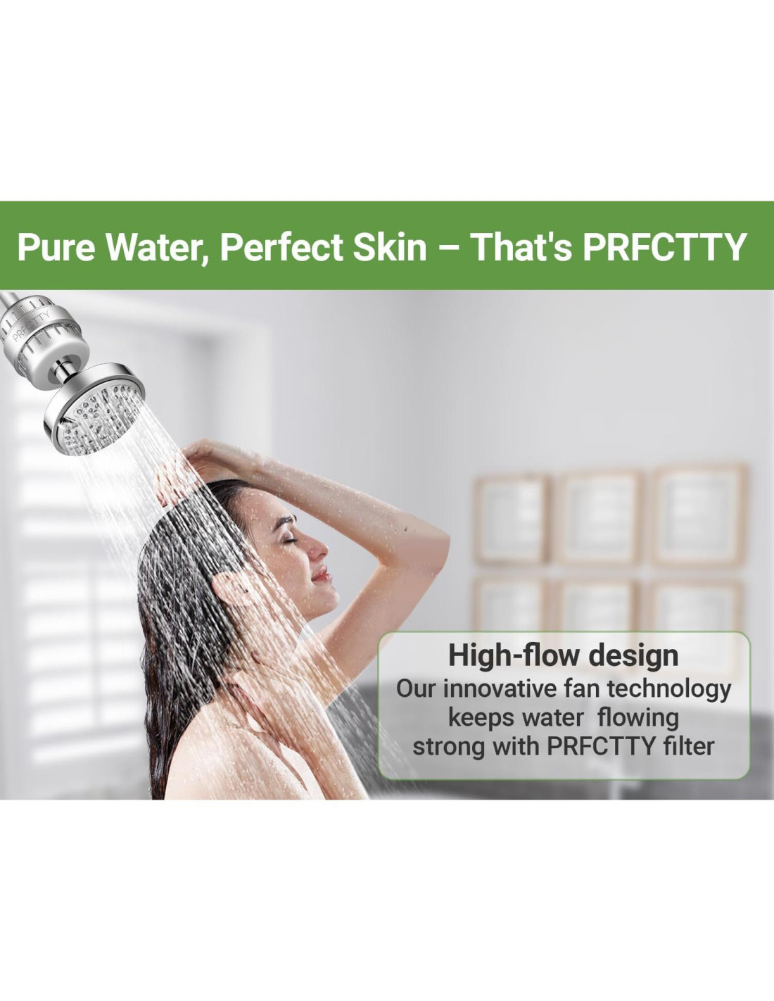 En PRFCTTY, creemos que tu experiencia en la ducha merece perfección. Nuestra misión es transformar tu ducha diaria en una fuente de pura indulgencia y bienestar, comenzando con el agua que usas. Usando medios de filtración de alto rendimiento meticulosamente seleccionados. El filtro PRFCTTY elimina efectivamente el cloro, metales pesados y otras impurezas no deseadas. Los agresores ocultos del agua del grifo - cloro, metales pesados y sedimentos - eliminan los aceites naturales, causando sequedad y desvanecimiento de la vitalidad. Impulsados por la perfección, nuestros expertos en ciencia del agua y fabricación de precisión ofrecen una pureza inigualable. No nos conformamos con lo suficientemente bueno, solo agua perfectamente purificada. "¡Mi cabello tratado con color finalmente mantiene su tono!" - "¡No más picazón después de la ducha!" - "¡Como ducharse en agua de manantial de montaña!"