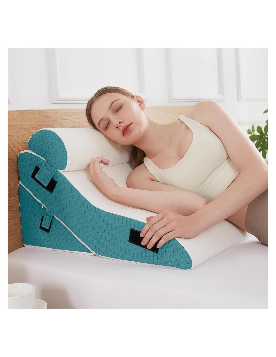 - Nuevo Diseño Antideslizante Mejorado: El ancho de 57.15 cm de nuestro cojín en cuña de espuma viscoelástica es más ancho que otros productos similares, lo que puede satisfacer los requisitos personalizados de las diferentes posiciones y necesidades de sueño de las personas, y se puede usar en cualquier combinación. Al mismo tiempo, el mismo color de velcro largo y plegable más ancho está cosido en el lado, y la parte base de los cojines para dormir para adultos está hecha de tela antideslizante, lo que mejora su estabilidad y seguridad.