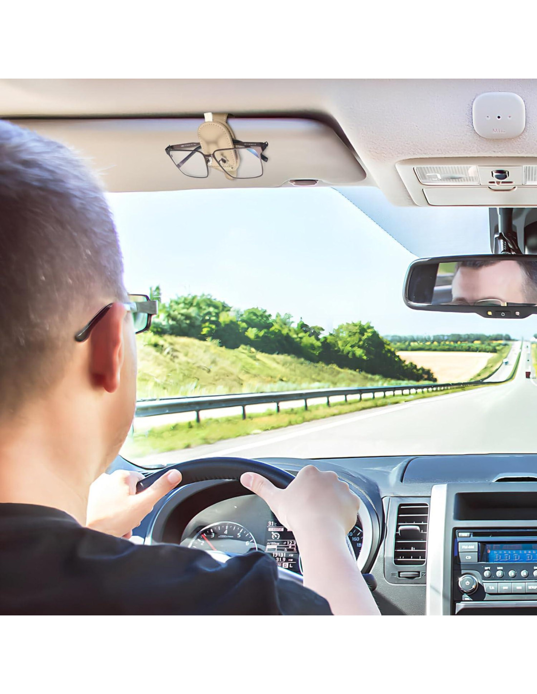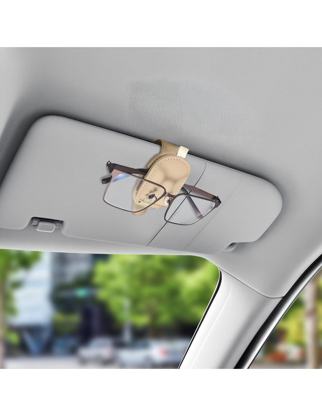 - Sin interferencia con la visión al conducir: Simplemente coloca el soporte para gafas de coche en la visera para una instalación rápida. Se ajusta perfectamente a la visera del coche sin ocupar espacio ni obstruir tu vista de la carretera, mejorando la conducción.