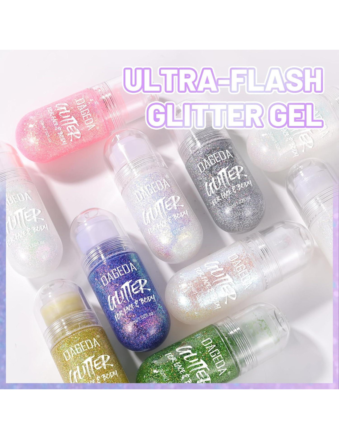 - [Fácil de Usar] La aplicación del gel de brillo es muy suave y fluida, hecho de brillo de grado cosmético, por lo que se puede usar de manera segura como brillo para el rostro. Se seca rápidamente y mantiene el maquillaje de brillo todo el día y se puede quitar con agua.
