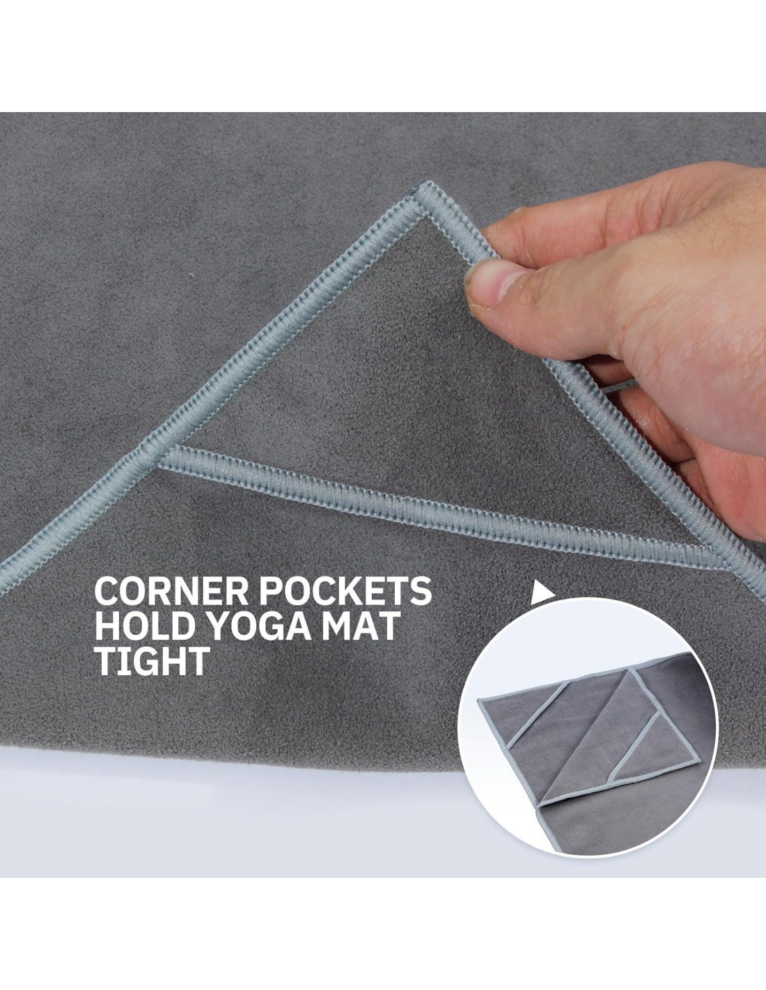 - Bolsillos en las Esquinas - La toalla de yoga cuenta con cuatro bolsillos en las esquinas que se ajustan de manera segura sobre los bordes de tu mat de yoga, manteniendo la toalla firmemente en su lugar durante tu práctica. Esto asegura que la toalla no se desplace ni se amontone, proporcionando una superficie estable.