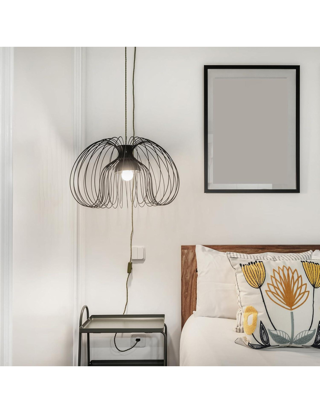 - Instrucción: El cable de lámpara cubierto de tela viene con extremos desnudos y estañados para una fácil instalación, bueno para cableado. Se puede aplicar en espacios reducidos como estanterías, escritorios y la mayoría de los muebles, o cerca de paredes como un cable de extensión.