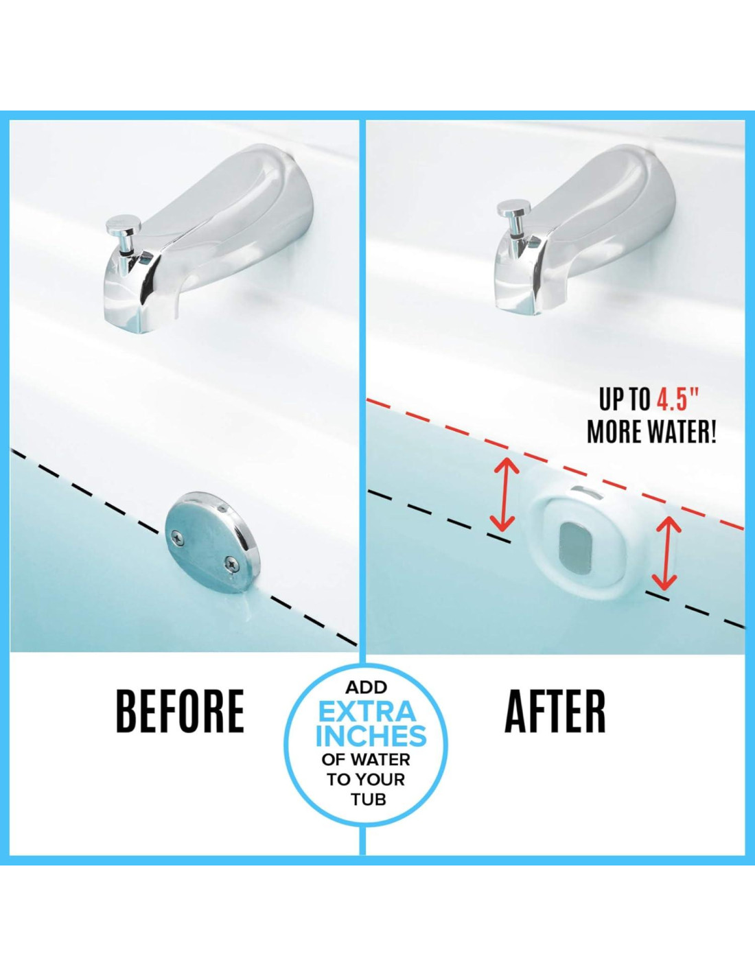 - Nuestro diseño exclusivo puede aumentar la profundidad del agua en tu tina hasta 4.5 pulgadas (11.43 cm) - ¡eso es 2 pulgadas (5.08 cm) más profundo que las cubiertas de drenaje de desbordamiento tradicionales!