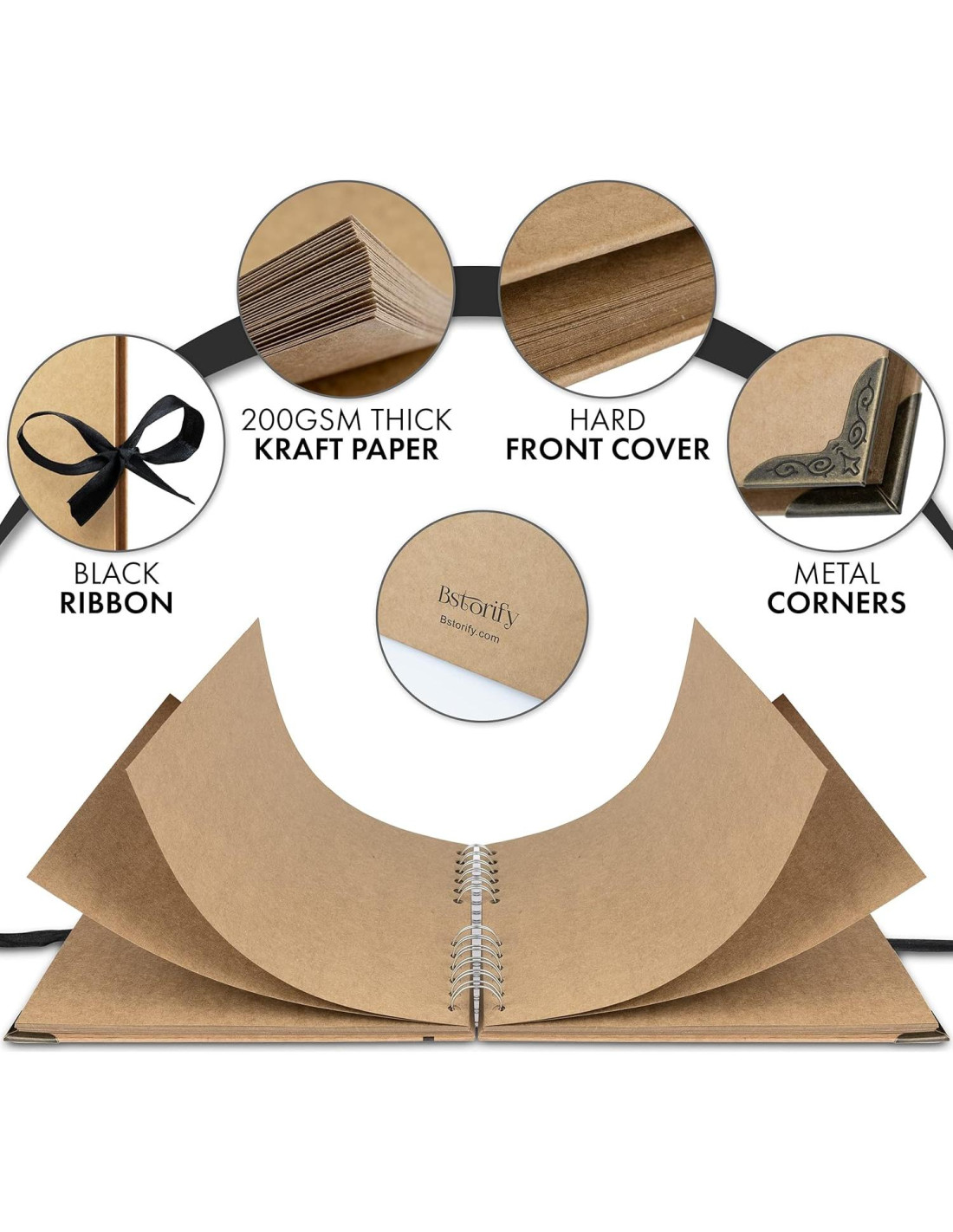 - El lomo encuadernado en espiral permite que el álbum de fotos se expanda para adaptarse a tus fotos, postales, souvenirs. Puedes atar la cinta en un lazo o en otro estilo que te guste y hacer que tu álbum de recortes sea tan individual como tus recuerdos y mantenerlos indefinidamente.