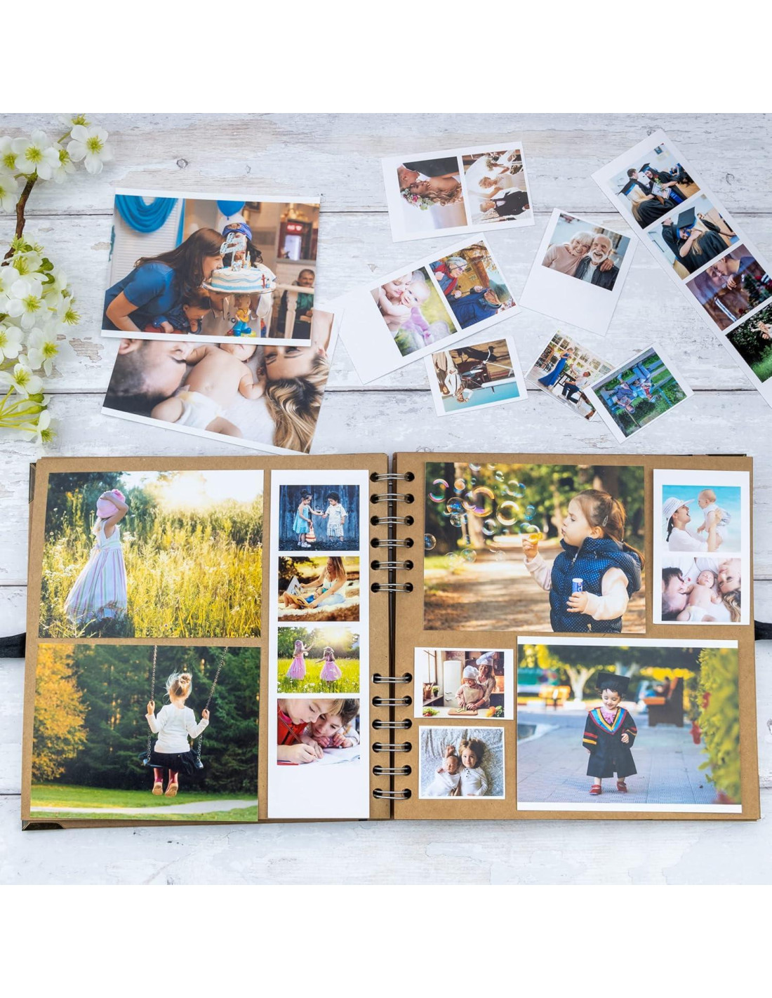 - Este álbum de fotos de kraft de 20.32 x 20.32 cm es duradero y adecuado para el almacenamiento a largo plazo de los hermosos recuerdos de ti y tus seres queridos. Tiene 30 hojas, 60 páginas de papel grueso de alta calidad de 200gsm, diseñado con cierre de cinta, tapa dura y protectores de esquina.