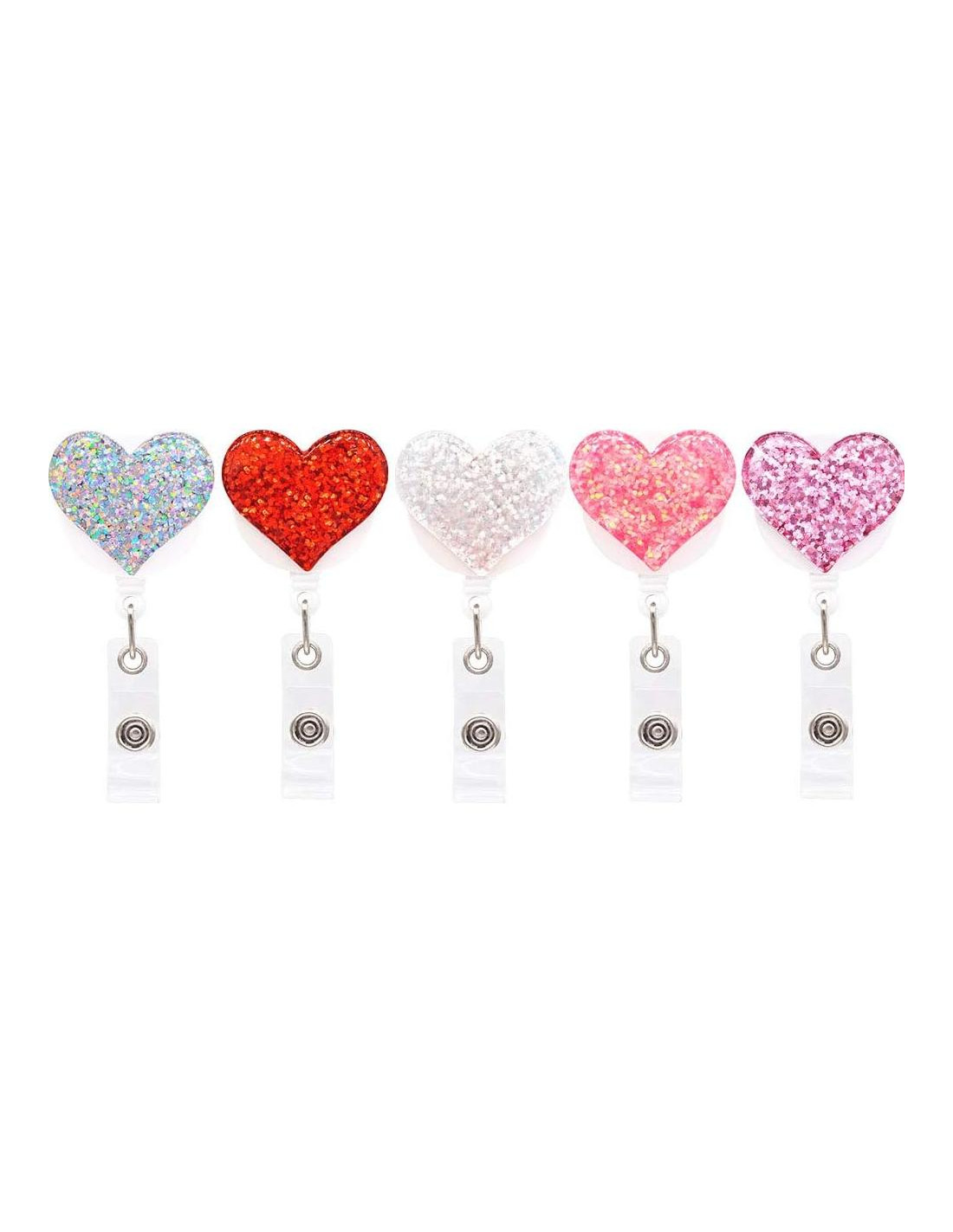 - Para tu día colorido: Obtén 12 reels de insignia retráctiles coloridos con corazón brillante de una vez.