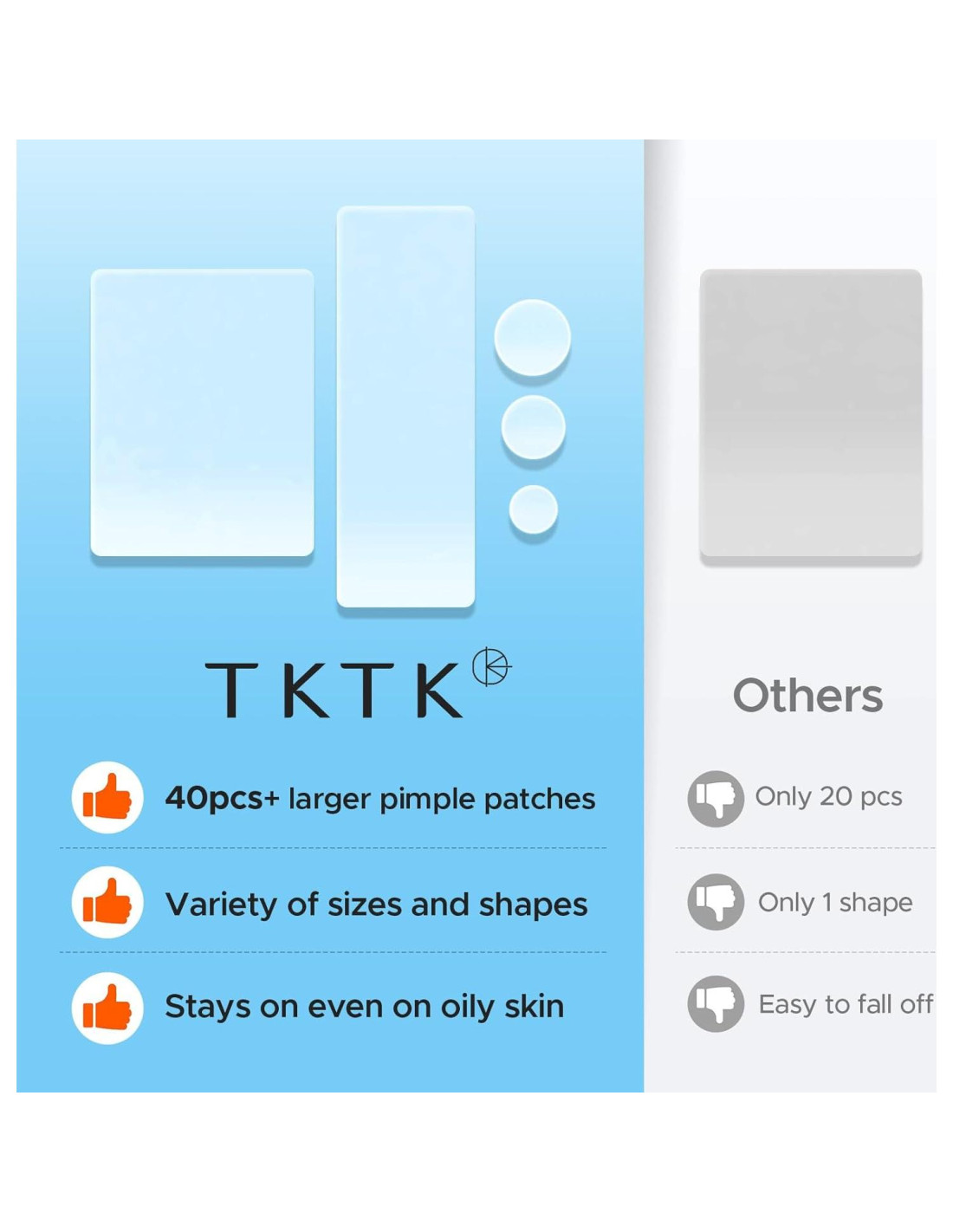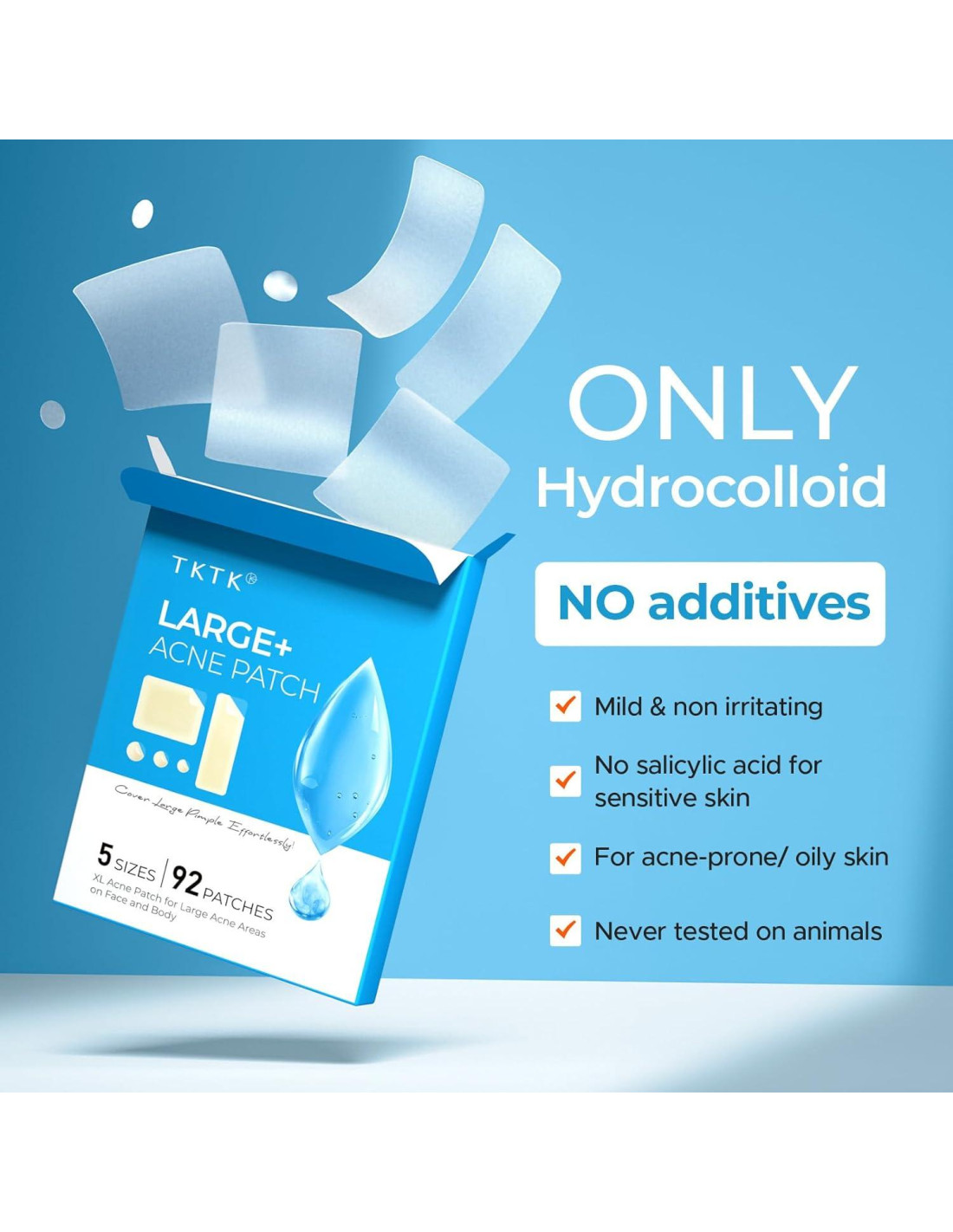 - Mayor Cobertura para Brotes de Acné: Los grandes parches hidrocoloides de TKTK son ideales para brotes grandes en la cara o el cuerpo, sin necesidad de usar un montón de parches más pequeños. Un imprescindible para quienes siempre experimentan brotes en áreas grandes