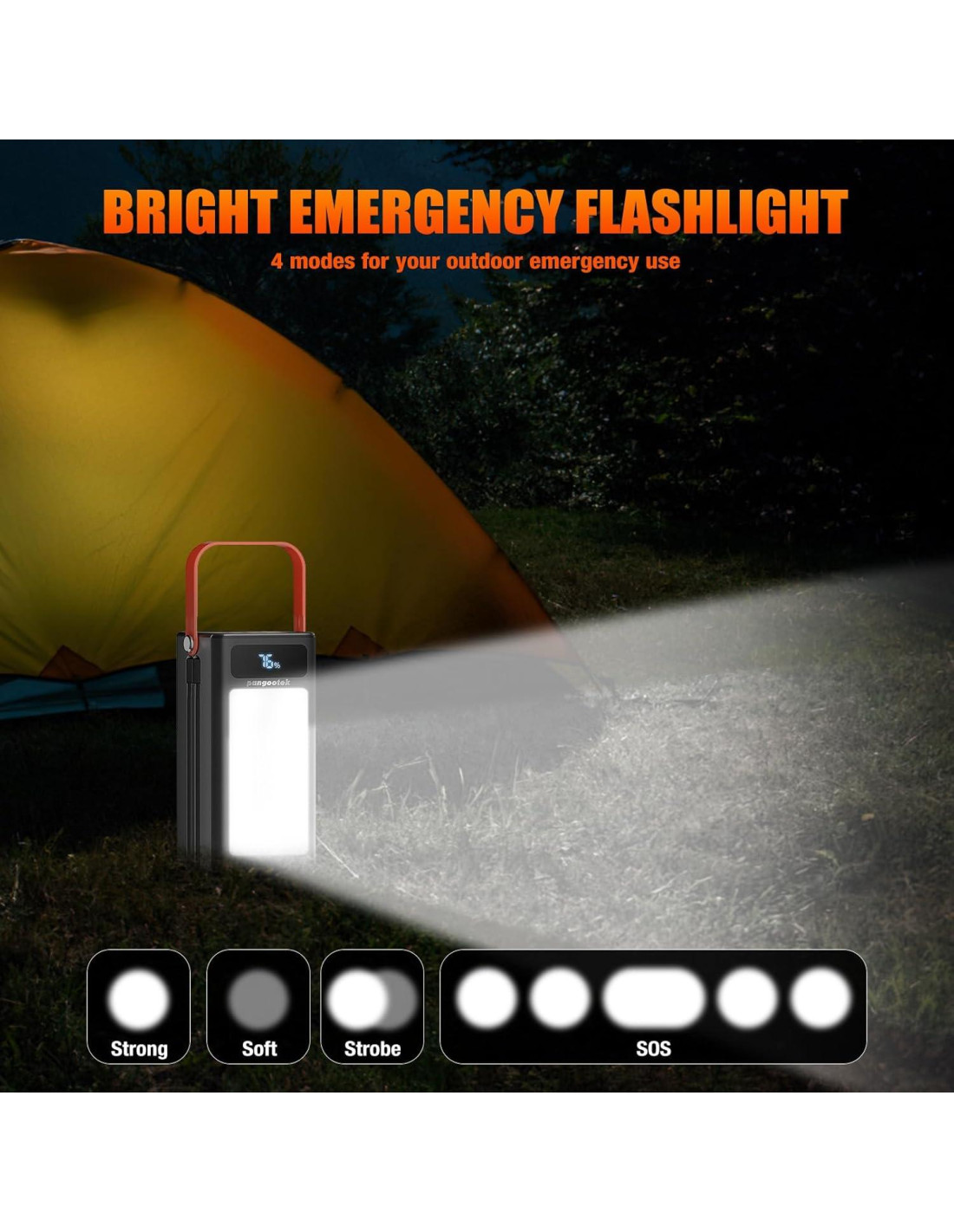- Pantalla digital LCD y linterna de emergencia - Mantente informado con la inteligente pantalla digital LCD que muestra con precisión la energía restante. La linterna incorporada ofrece 4 modos activados por un doble clic del botón, perfecta para emergencias como huracanes y cortes de energía. Su versatilidad asegura que siempre estés preparado.