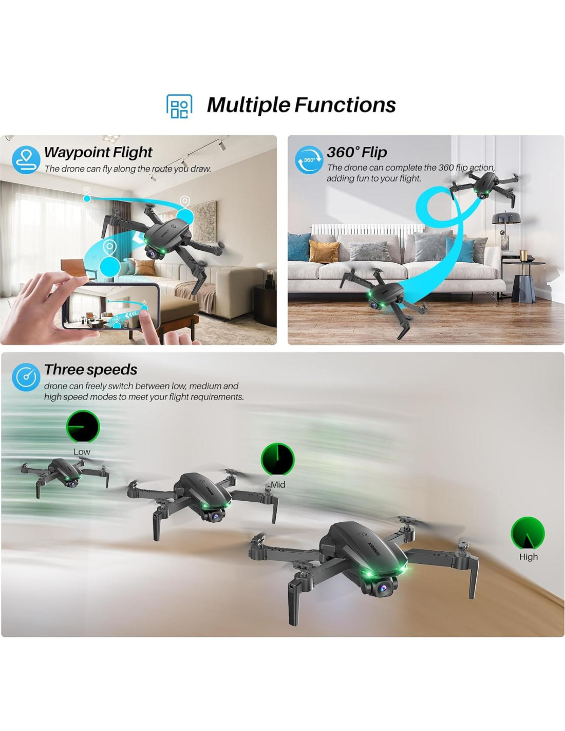 - [Dron Multifuncional] Disfruta de características inteligentes como volar a lo largo de un camino establecido, detección de gravedad, volteretas de 360 grados, modo sin cabeza y ajuste de 3 velocidades para un control fácil.