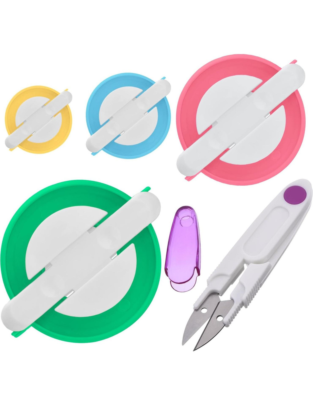 - Fácil de usar: enrollar la lana alrededor del fabricante de plástico de manera uniforme, tirar fuerte en el medio para asegurar y cortar los flecos, bueno para que niños y adultos hagan pompones y manualidades