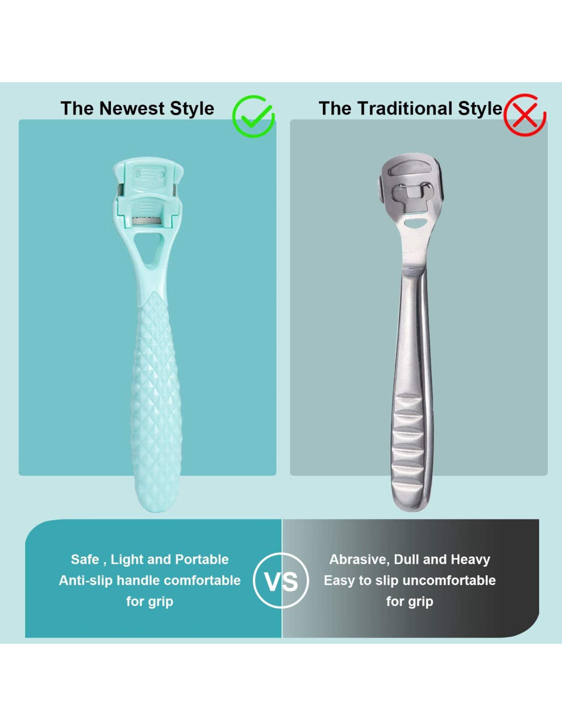 - Eliminar callos sin ángulo muerto - El tamaño compacto y el espacio de 0.5 mm permiten que este raspador de callos para pies termine el trabajo de limado de precisión en esas áreas confinadas donde un limador de pies de tamaño normal no puede alcanzar, como el talón y la palma. Elimina cada piel dura y agrietada sin ángulo muerto.