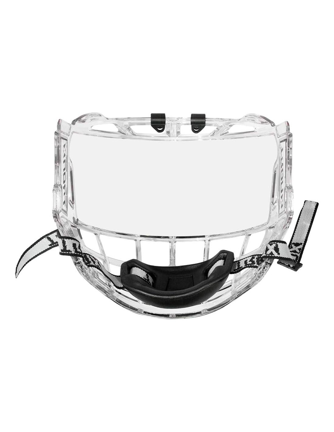 - Visor de escudo de hockey de policarbonato de alto impacto con recubrimiento exterior resistente a rayones que resiste palos por encima, discos voladores y cabezazos.