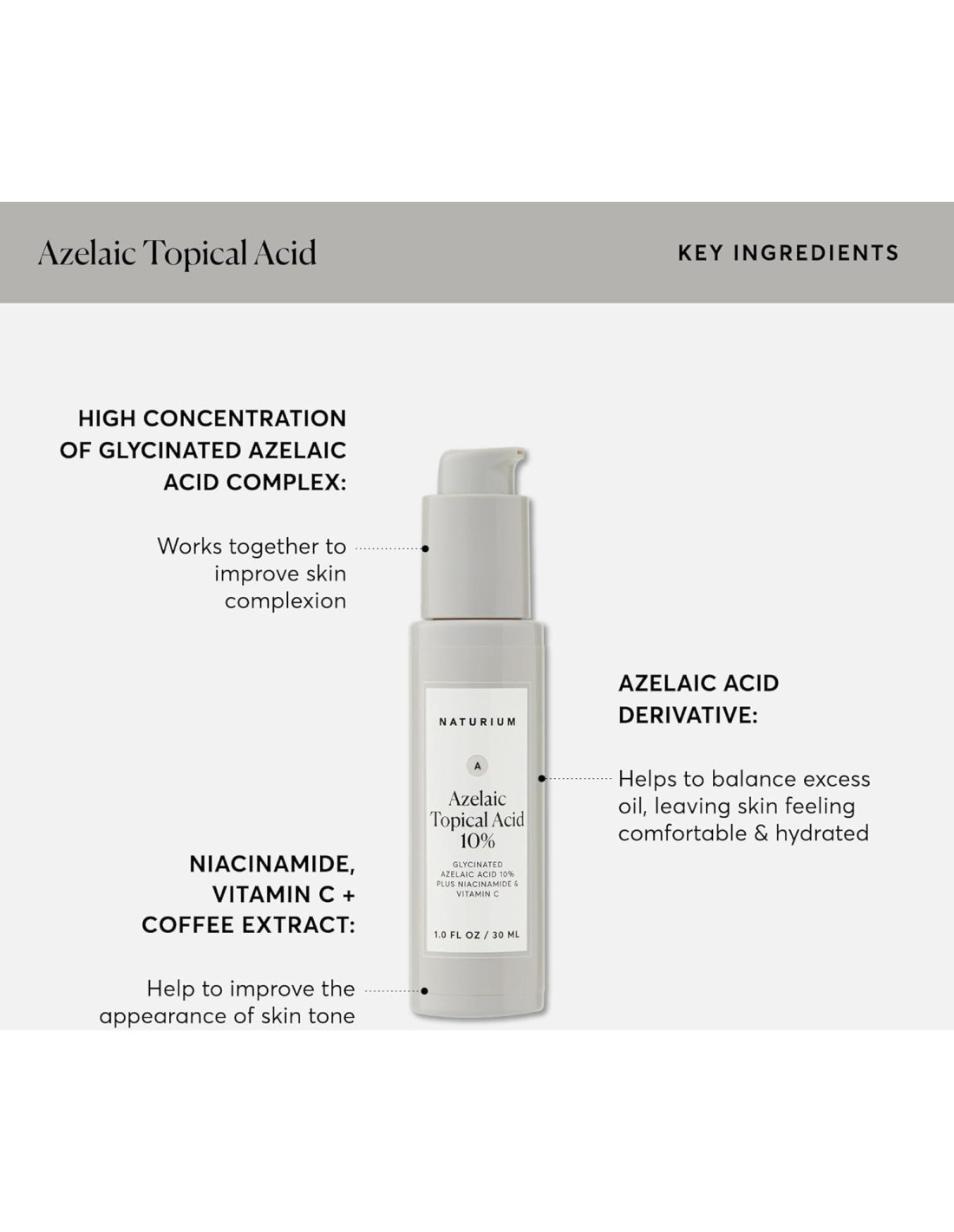 - RESULTADOS CLÍNICAMENTE DEMOSTRADOS: Nuestro Ácido Tópico Azelaico 10% ha demostrado clínicamente exfoliar, reducir el enrojecimiento y mejorar el tono y la textura de la piel (basado en un estudio clínico de 8 semanas en todos los tipos de piel y piel autoperceptiva sensible)