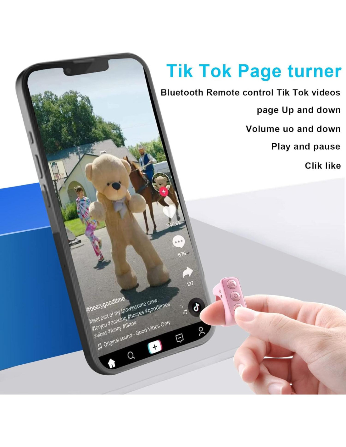 - Control Remoto Bluetooth Tik Tok: Fácil y conveniente de operar, al ver Tik Tok, puedes usar el anillo de desplazamiento tik tok para deslizar el video, controlar el volumen, pausar y reproducir, presionar el botón de me gusta, ¡libera tus manos! *También adecuado para la aplicación Kindle, ten en cuenta que es la aplicación Kindle en tu teléfono, no dispositivos Kindle.