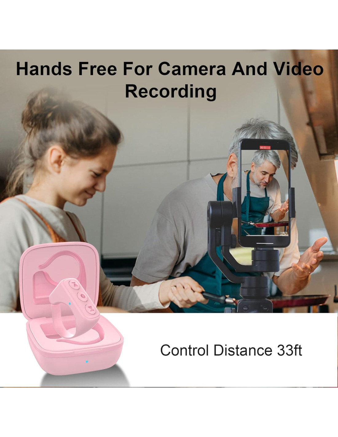 - Control Remoto de Cámara Bluetooth: El anillo de control remoto Bluetooth puede controlar el obturador de la cámara del teléfono, transmisión de señal dentro de 33 pies (10 metros), sin sostener el teléfono celular para lograr tu selfie o video creativo. Disfruta de momentos hermosos.
