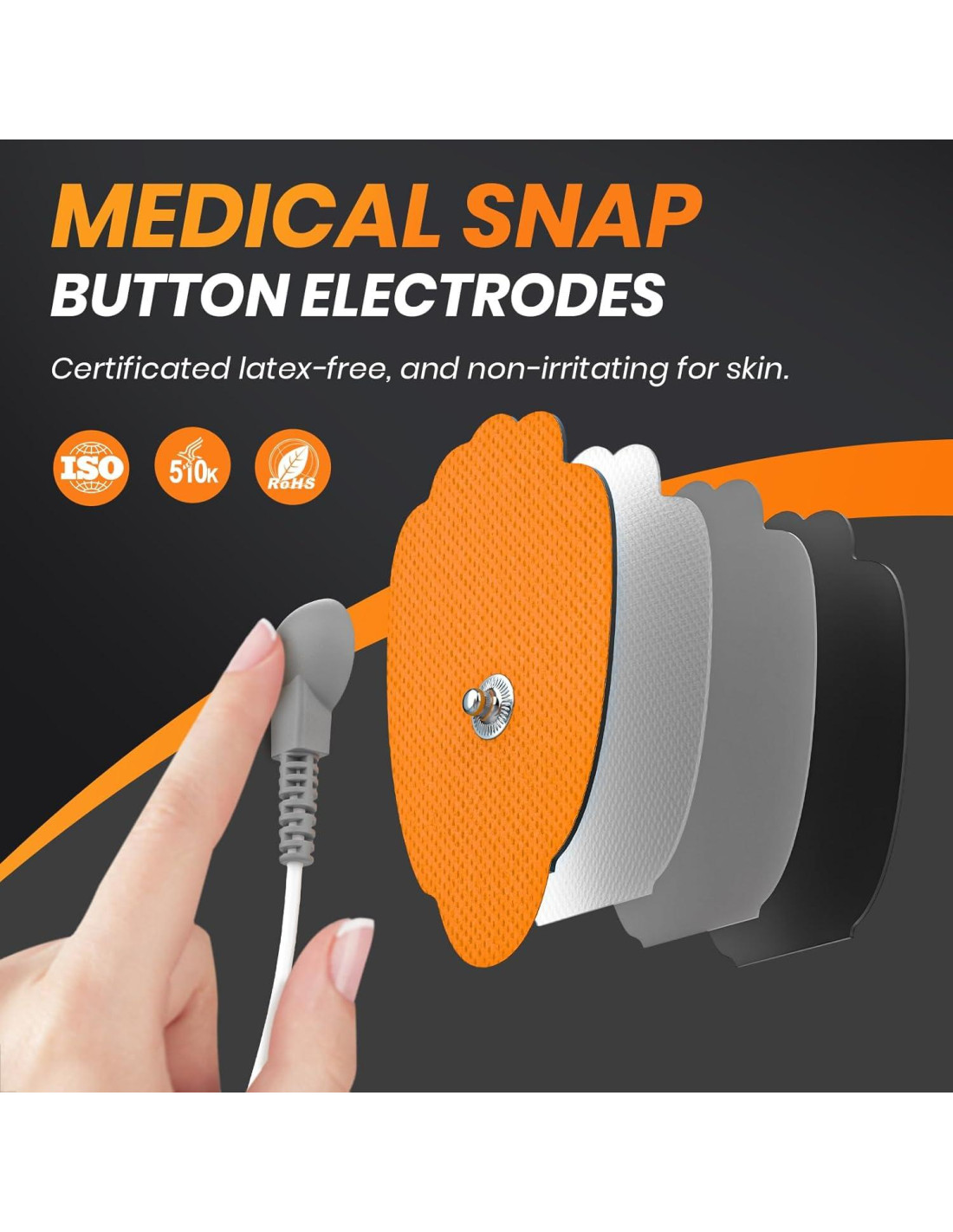 - Lo Que Recibes: 20 Pcs de pads de electrodos con botón (4 pads rectangulares de 2'' x 4'' (5,08 cm x 10,16 cm), 12 pads en forma de palma de 2'' x 3'' (5,08 cm x 7,62 cm), 4 pads ovalados de 1'' x 2'' (2,54 cm x 5,08 cm)), 12 meses de garantía.