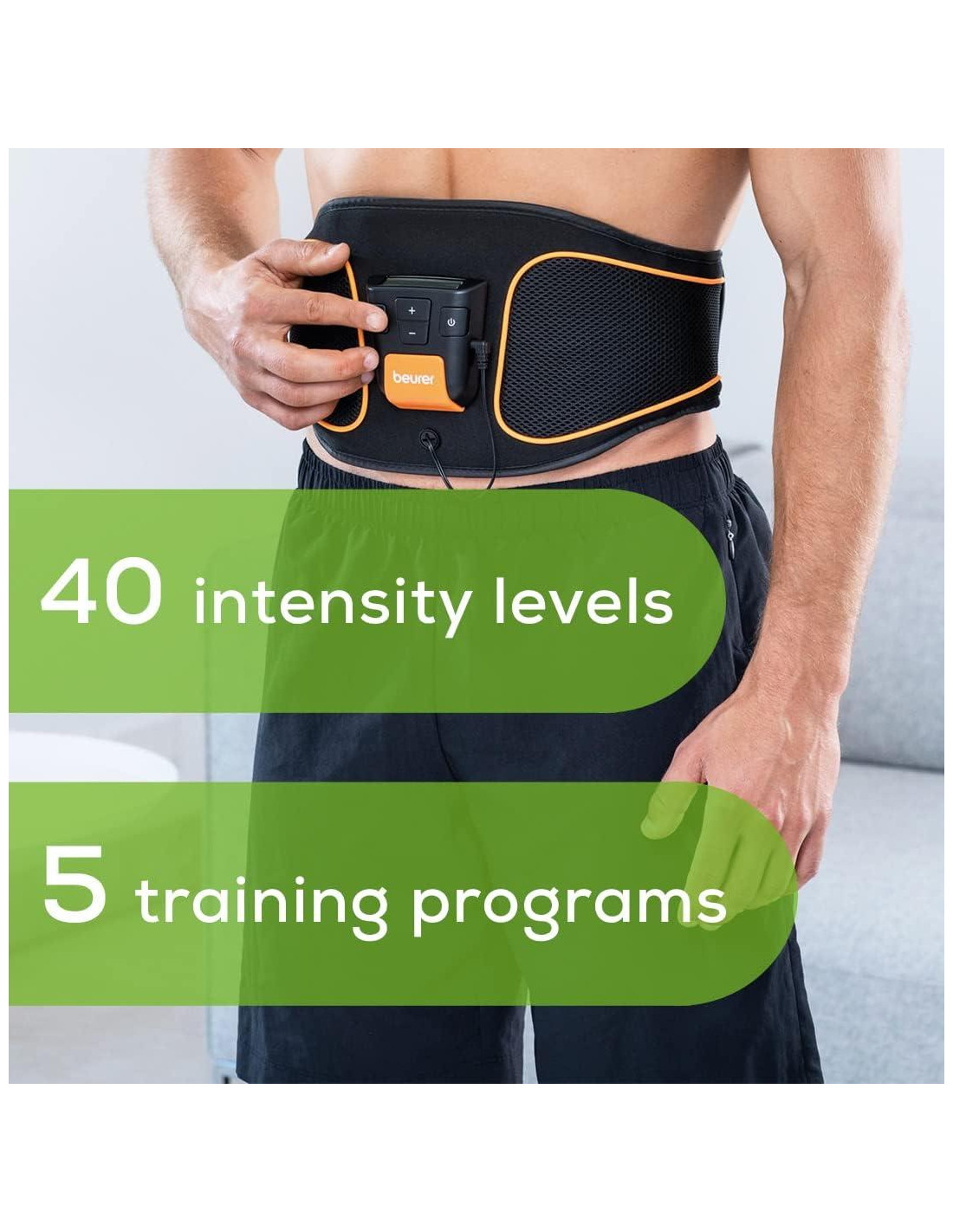 - 40 NIVELES DE INTENSIDAD: El cinturón estimulador de abs tiene una intensidad ajustable de 0-40 a través de 5 programas de entrenamiento, elige tu nivel preferido y aumenta o disminuye en cualquier momento durante la sesión