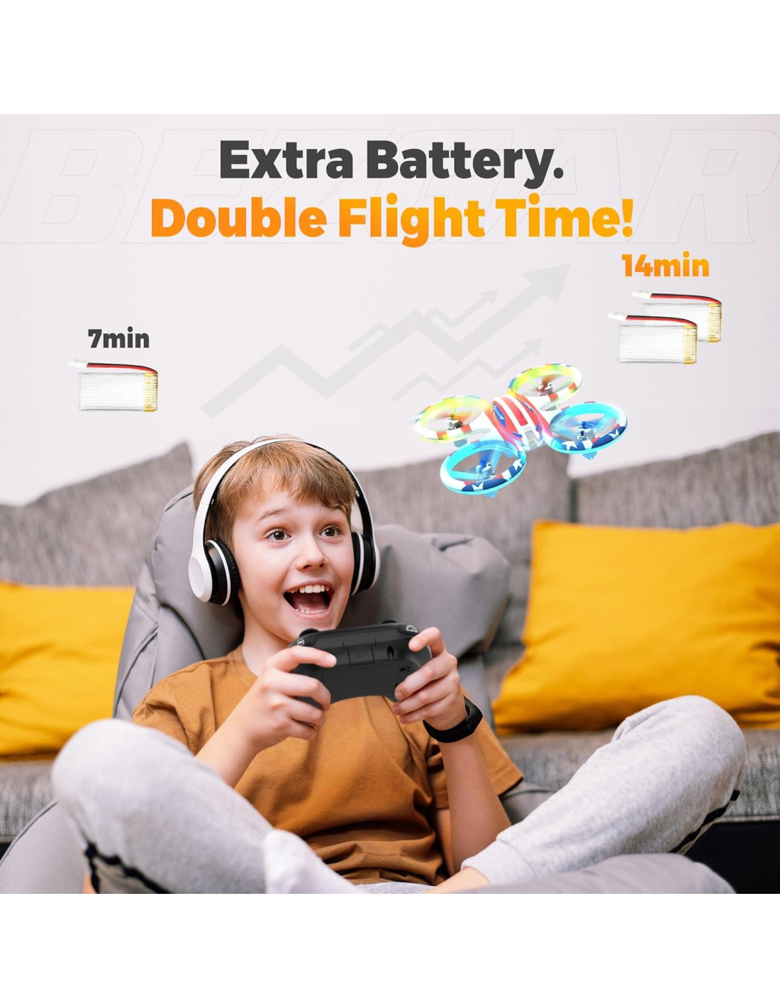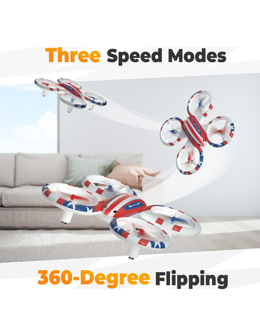 - [Dron de Control Remoto Fácil para Niños] : Vuela este mini dron RC para niños con solo presionar un botón. La función de mantenimiento de altitud suspende los drones para niños en el aire asegurando un vuelo estable. El modo sin cabeza también evita que los principiantes pierdan su dirección de vuelo.