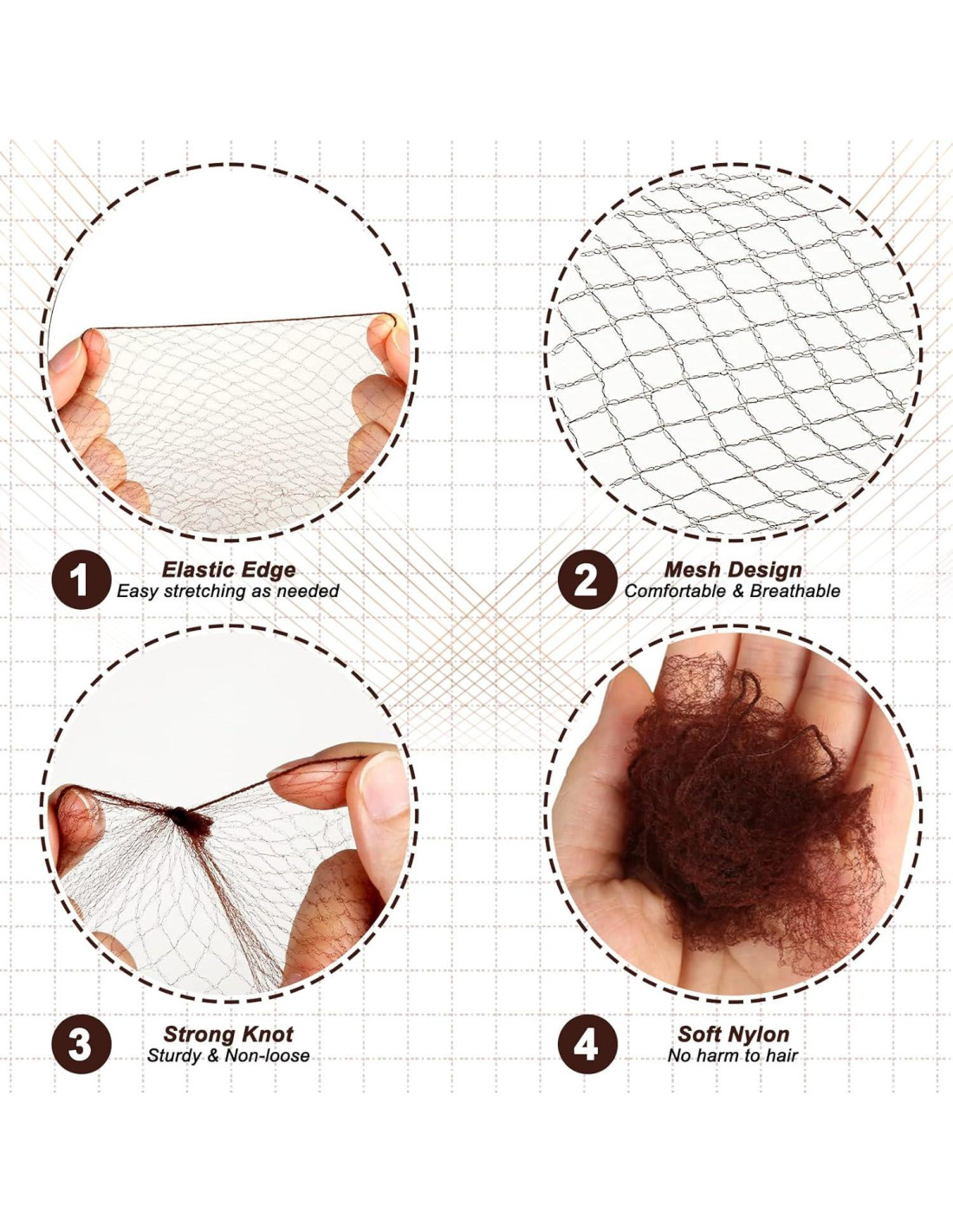 - [Red de Cabello de Malla] Las redes de cabello invisibles están diseñadas con un buen borde elástico, ajuste perfecto para cabello largo, corto, trenzas o pelucas, no te harán sentir apretado. Puedes estirarlo según lo necesites fácilmente. El diseño de malla asegura tanto la seguridad del cabello como la comodidad de transpirabilidad mientras trabajas.