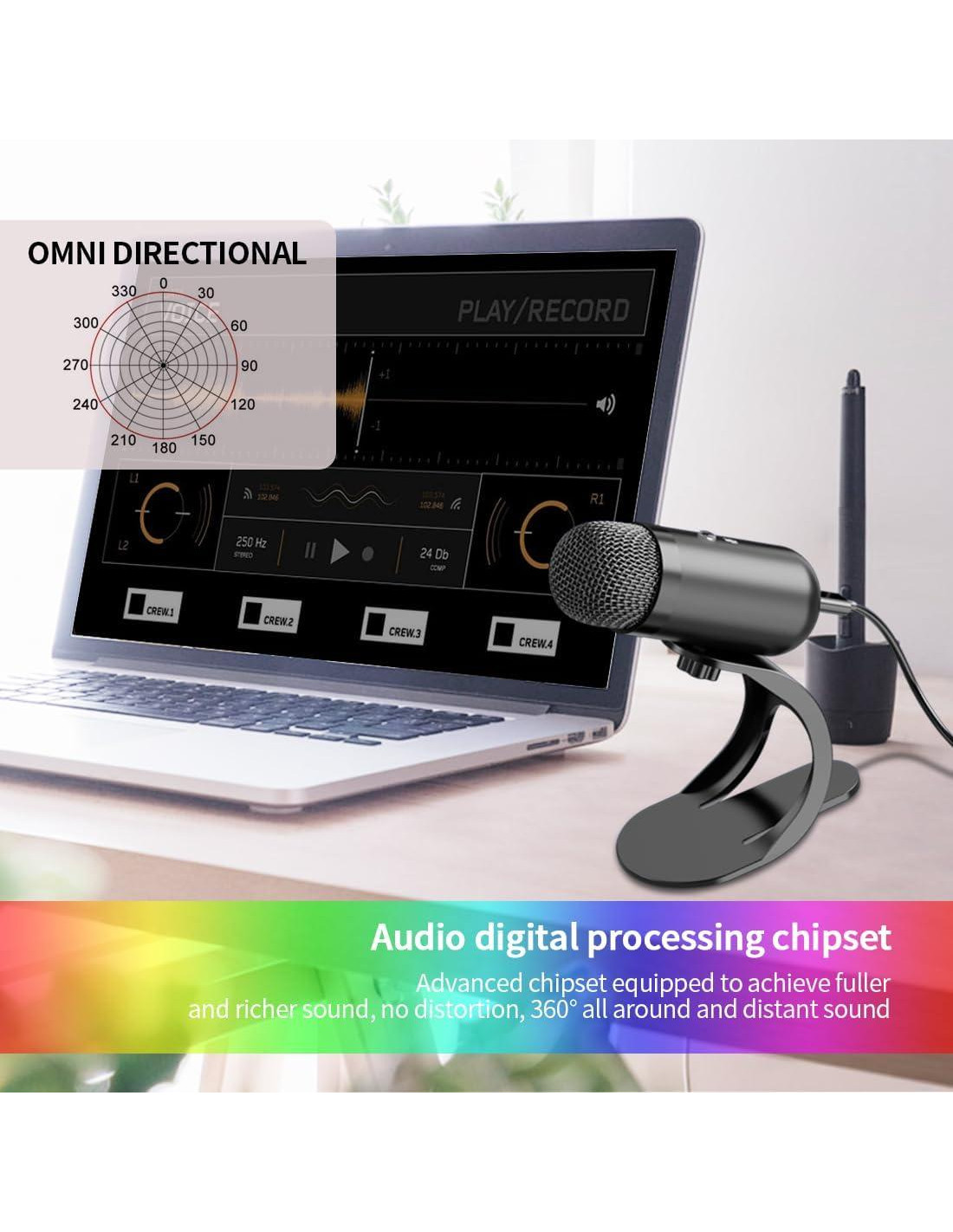 - [Flexible y ajustable] El cuerpo de nuestro micrófono USB para computadora se puede rotar y ajustar 360 grados, el tubo de metal capta el sonido desde 360 grados con alta sensibilidad, puedes ajustarlo a cualquier ángulo. Esta flexibilidad permite que el micrófono se pliegue para portabilidad y fácil uso en cualquier lugar.