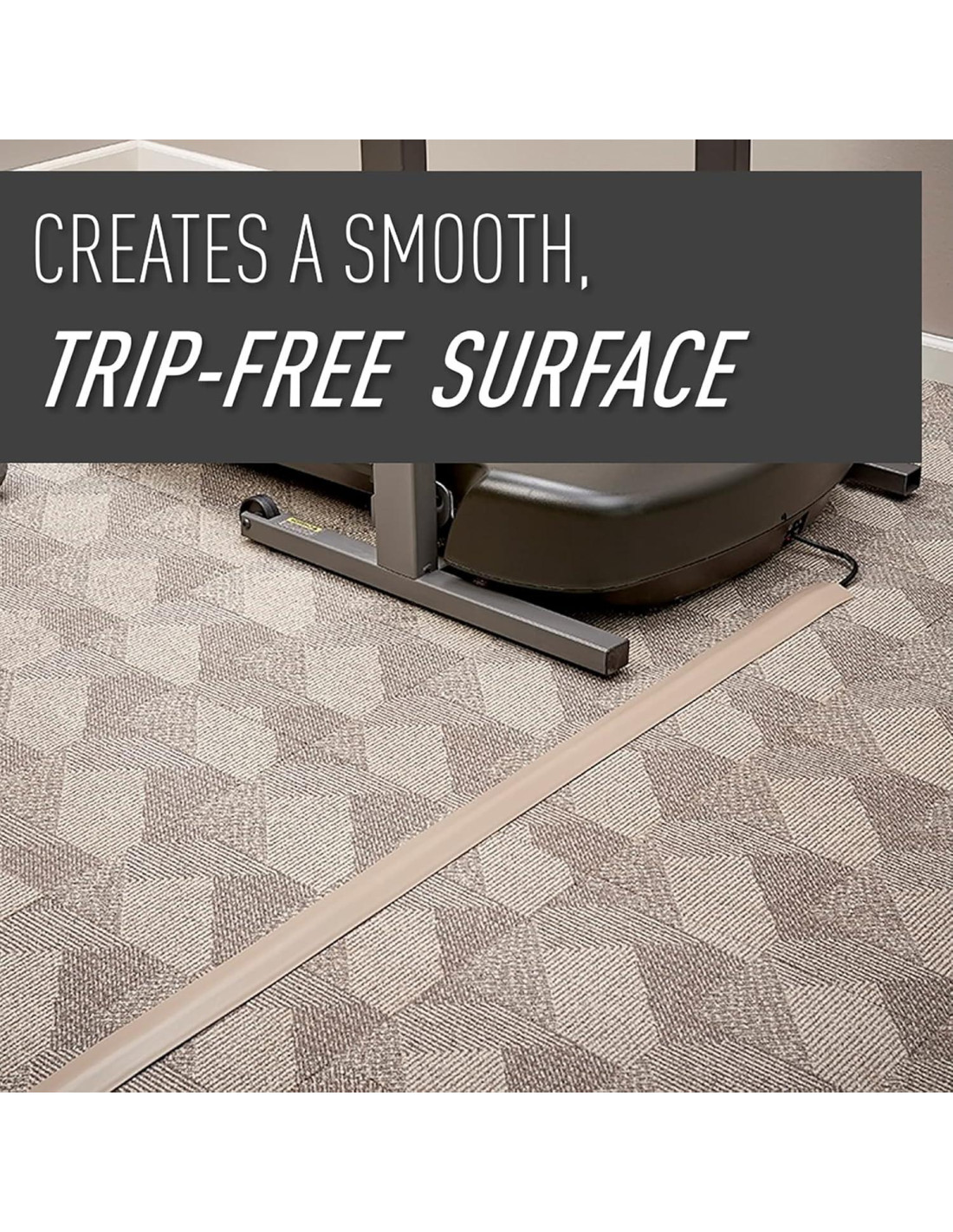 - Gestión de Cables - La cubierta de cables para el piso permite ocultar cables y alambres mientras crea una superficie suave y libre de tropiezos e incluye cinta adhesiva de presión que se puede aplicar a cualquier superficie de piso interior