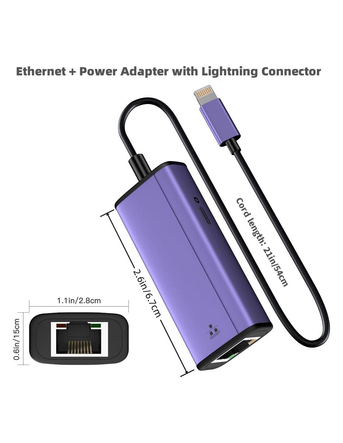 - Diseño 2 en 1: Este adaptador de red LAN ethernet Lightning a RJ45 2 en 1 cuenta con un puerto ethernet y un puerto de carga lightning. Puedes usar la interfaz ethernet sola o usar ambos puertos, el de ethernet y el de carga, simultáneamente.