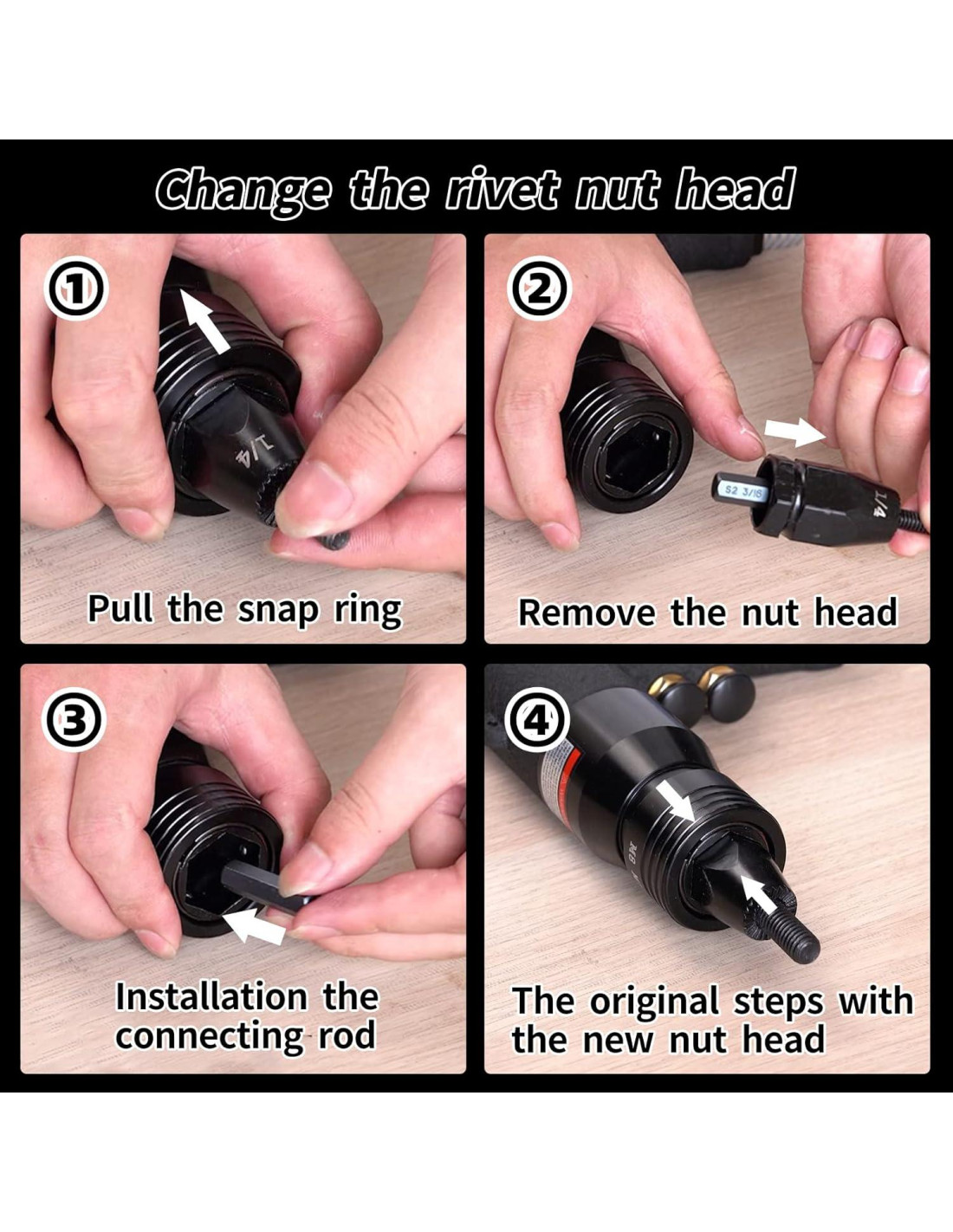 - ALTA CALIDAD: Pistola de tuercas remachadas neumática con válvula reguladora de aire, ajusta el tamaño del gas, ajusta efectivamente la intensidad y velocidad del trabajo. Silenciador empotrado, reducción efectiva del ruido generado durante el trabajo. La marca del cuerpo fundido es la garantía de calidad.