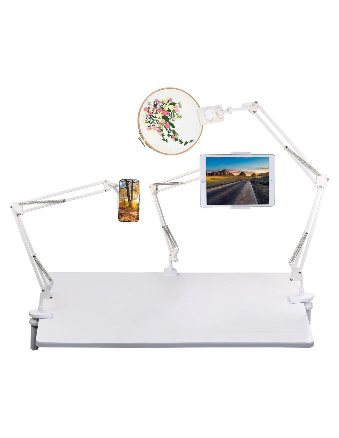 - Perfecto para Leer y Ver: Se incluyen 3 estilos de clips en el paquete, 1 clip para la tableta, 1 clip para el teléfono, 1 clip para proyectos de bordado. Este clip de montaje para tableta funciona como un buen compañero para iPad y teléfono en varias ocasiones, como ver películas, tener videollamadas o leer con la tableta. Y este soporte para tableta también es bueno para ver recetas mientras cocinas en la cocina.