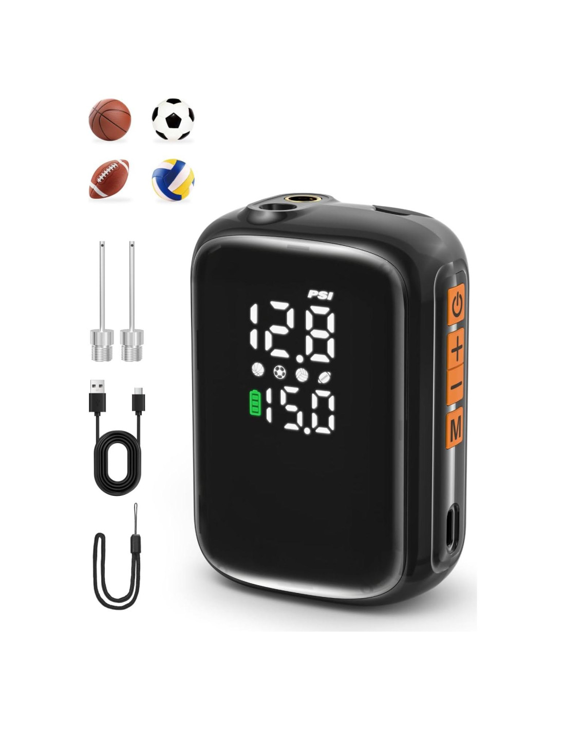 - Diseño Compacto y Portátil: Midiendo 3.94 x 2.76 x 1.65 pulgadas (10,00 x 7,01 x 4,19 cm) y pesando solo 0.49 lbs (0,22 kg), la bomba de pelotas es compacta y ligera, lo que facilita su transporte en una mochila; También cuenta con un diseño de cordón para evitar pérdidas y un compartimento de almacenamiento interno para la aguja incluida, ahorrando espacio valioso en tu bolsa