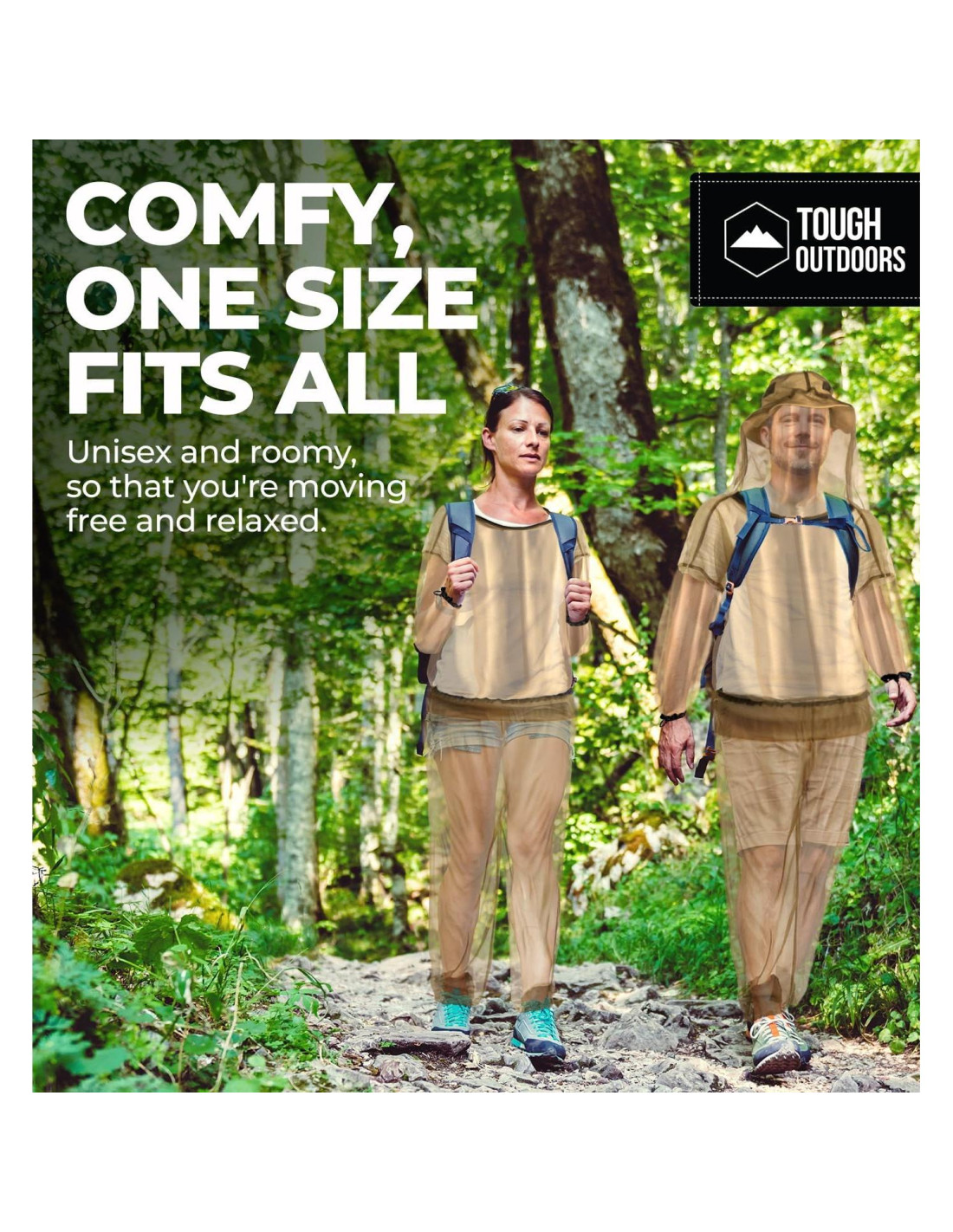 - Muévete con Facilidad: Nuestra chaqueta de mosquito con capucha es ligera, transpirable y perfecta para cualquier actividad. Este traje de red para mosquitos de cuerpo completo proporciona movimiento sin restricciones mientras mantiene a los insectos alejados.