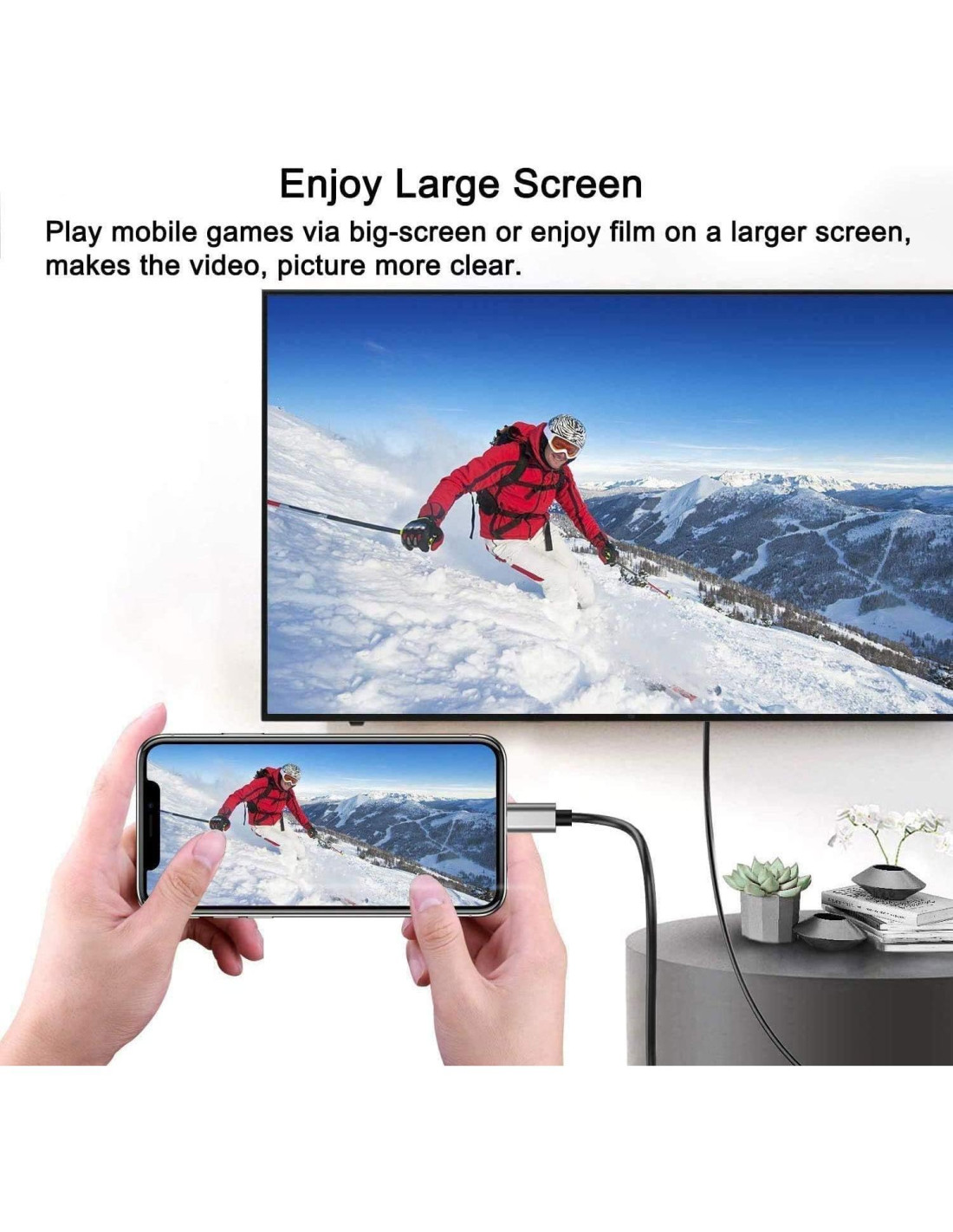 - Características Con este adaptador de cable HDMI HD TV de teléfono, puedes conectar fácilmente tu teléfono/iPad a un HDTV, monitor o proyector con entrada HDMI. Al conectar el dispositivo a la pantalla grande, es una herramienta ideal para ver programas de TV, reuniones, juegos, videollamadas o expandir el espacio de trabajo. De esta manera, no solo disfrutas de la pantalla grande, sino que también proteges tus ojos.