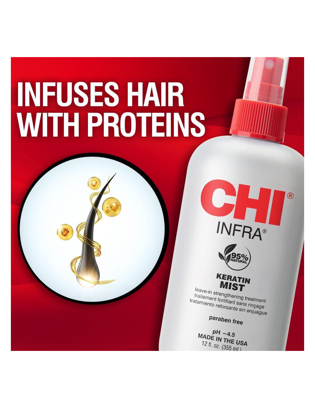 Descripción del Producto CHI Keratin Mist es un spray de leave-in avanzado que proporciona al cabello fuerza, protección y suavidad, mientras deja el cabello sedoso y brillante con una manejabilidad increíble. Historia de la Marca Los productos y herramientas para el cuidado del cabello CHI son fabricados por Farouk Systems, una empresa con sede en Houston.