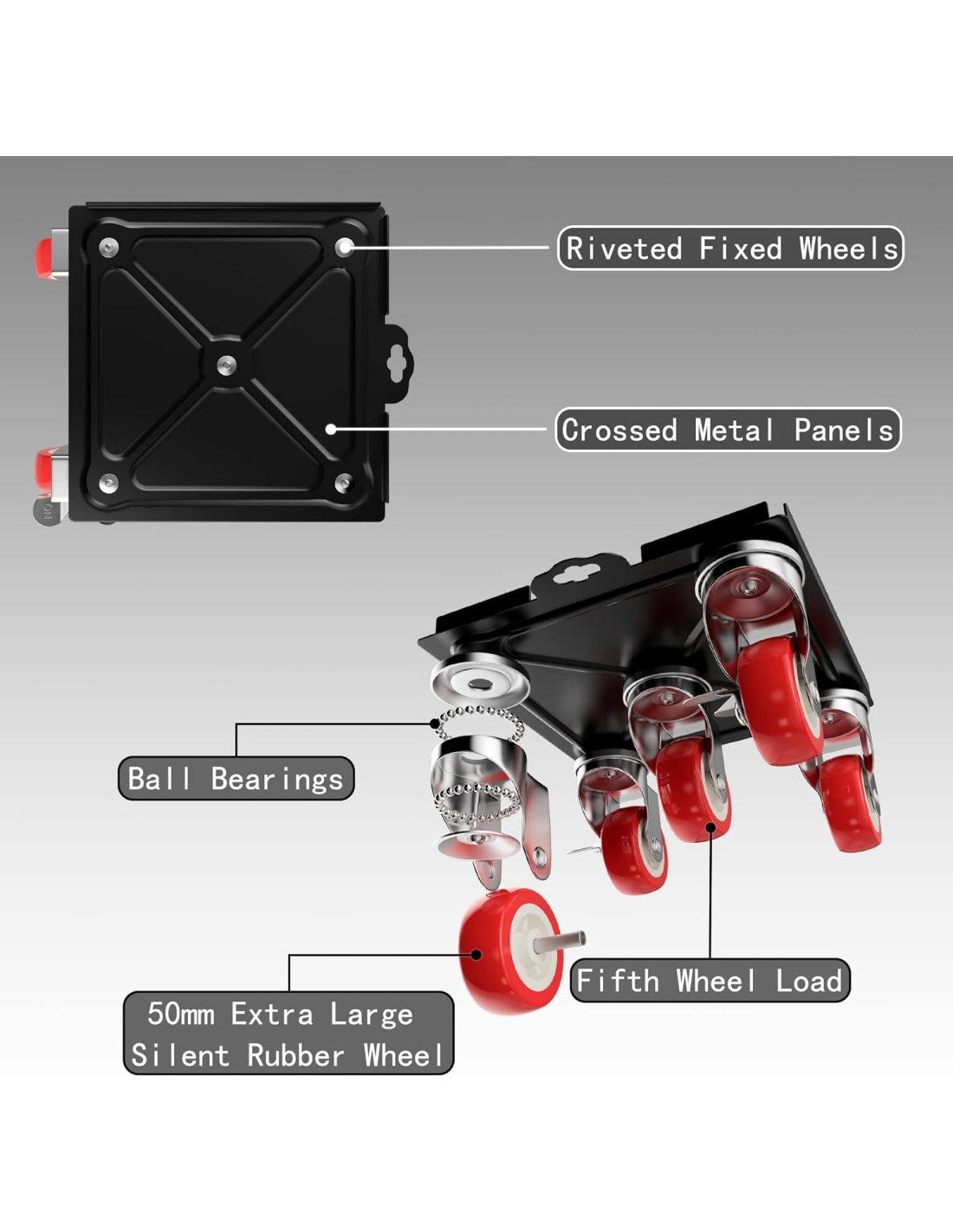 - [DISEÑO NUEVO MEJORADO]: El carro de muebles con ruedas utiliza un panel de carga más grande con una quinta rueda en el centro para aumentar la capacidad de carga; diseñado con un borde de retención en forma de L, no es fácil que se deslice durante el manejo, con dos interruptores de bloqueo que pueden fijarse en cualquier momento, gancho de remolque de mango anti-presión que puede proteger efectivamente los dedos.