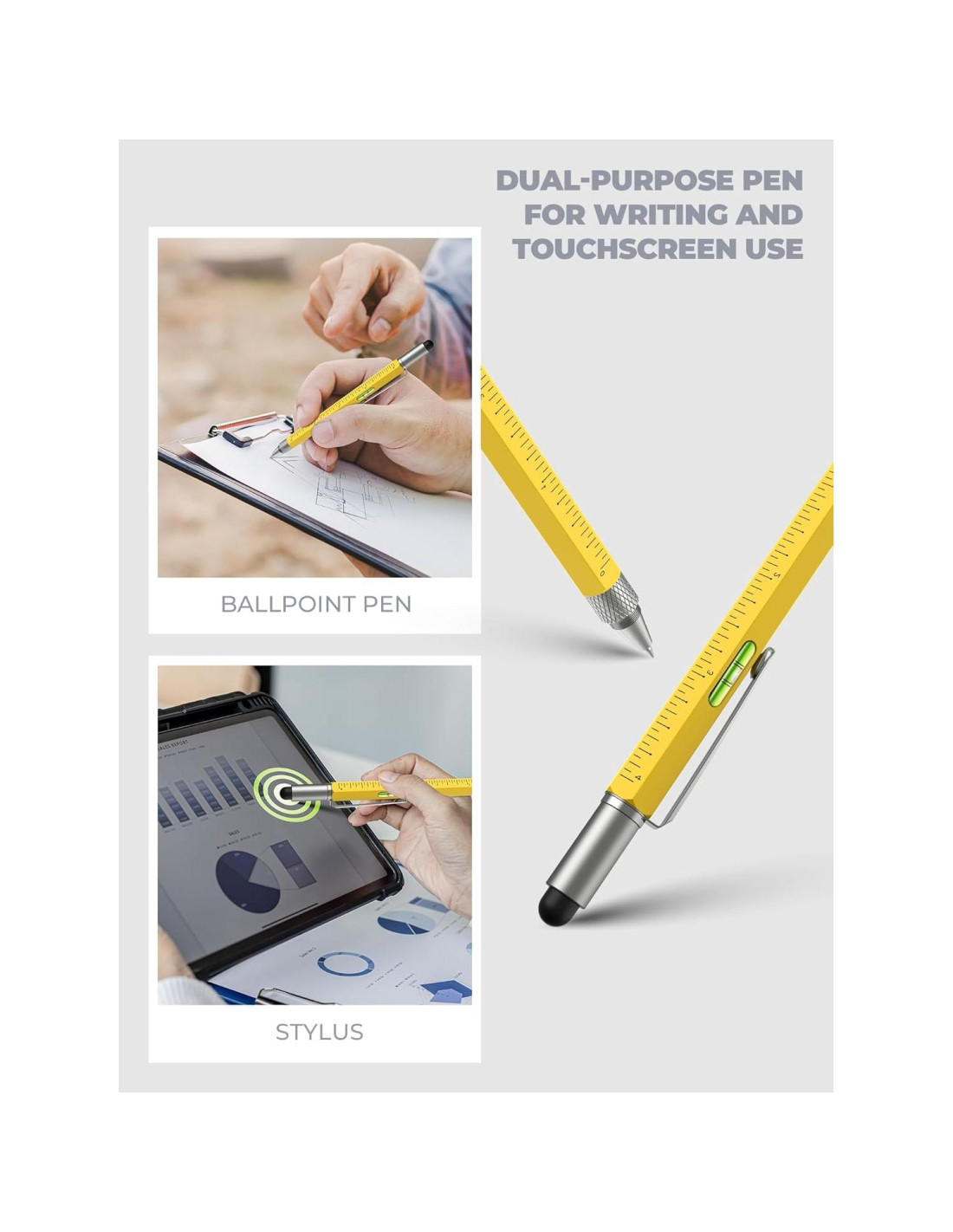 - Bolígrafo Multiherramienta 6 en 1: Los gadgets geniales para hombres tienen 5 funciones múltiples: Estilógrafo para pantalla, nivel de burbuja, reglas en centímetros/pulgadas, destornillador de cabeza plana y Phillips y un bolígrafo de bola. Los bolígrafos de construcción vienen con 4 recargas adicionales que escriben muy suavemente con un flujo de tinta constante, brindándote una experiencia de escritura agradable. Los bolígrafos multifuncionales se pueden dar como regalos para carpinteros, ingenieros, carpinteros, trabajadores de la construcción, ¡los hombres no sabrán que necesitan un bolígrafo de herramienta de construcción genial hasta que lo tengan!