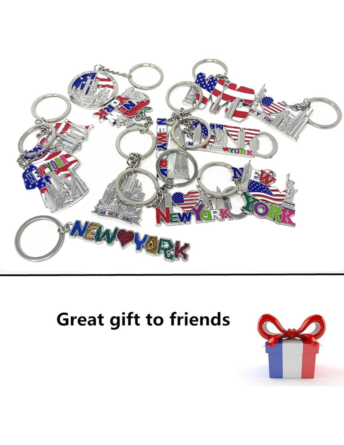 Conjunto de llaveros metálicos de 12 piezas de Nueva York NYC, colección de souvenirs, incluye Empire State, Freedom Tower, Estatua de la Libertad, bandera de EE. UU. y más