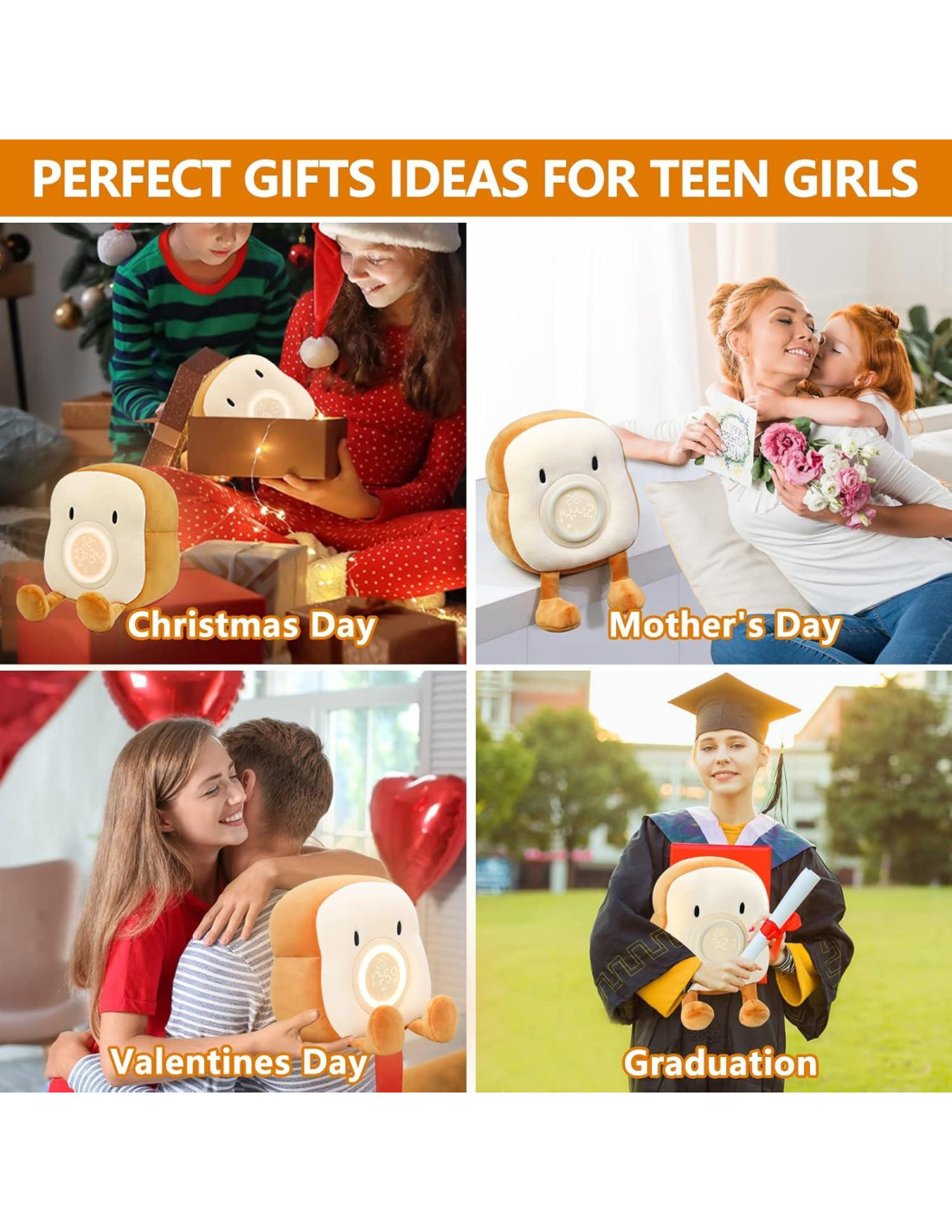 - Nuevo 5 en 1 Multifuncional: Reloj Despertador Doble y Snooze + Recargable + Luz Nocturna Cálida + Juguete de Peluche Suave Estético + Soporte para Teléfono Bonito + Decoración de Habitación Bonita