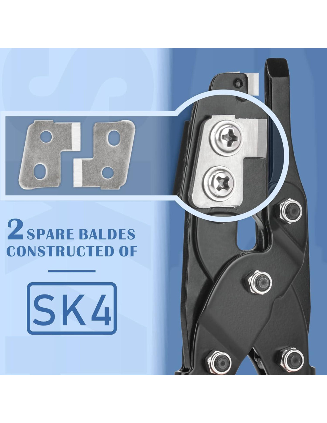 - Construido de acero de alta calidad con alta resistencia al desgaste y a la corrosión. Se incluyen dos cuchillas de repuesto adicionales.