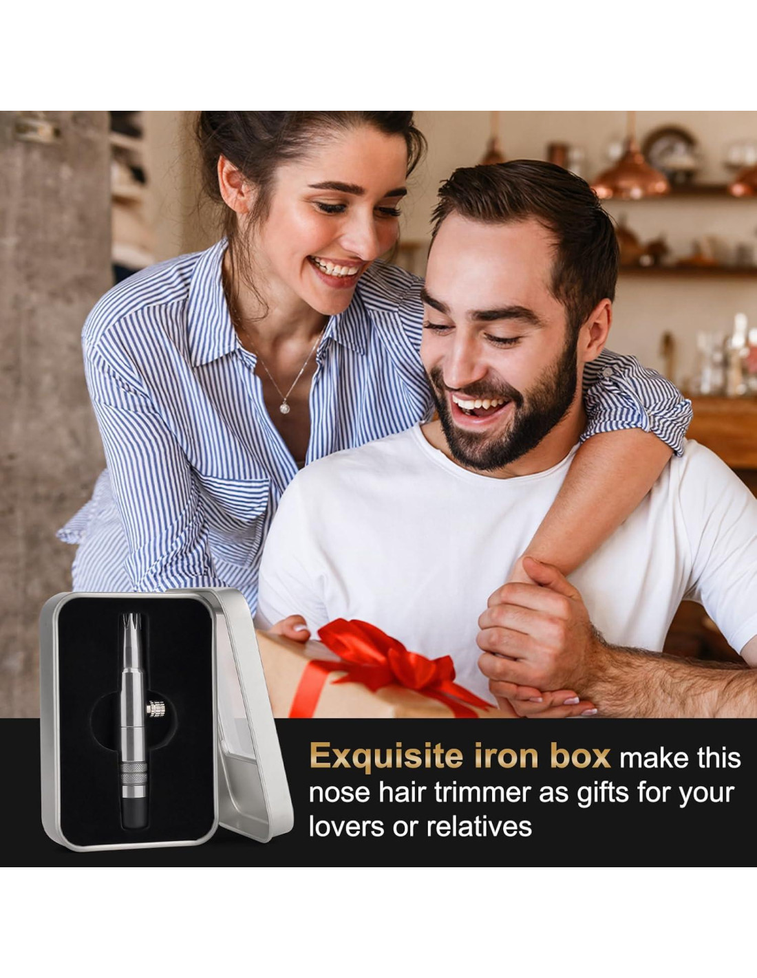 - Embalaje de caja de hierro exquisito - Este práctico recortador de vello de acero inoxidable será un regalo perfecto para hombres. ¡Como cumpleaños, Navidad o Día del Padre!
