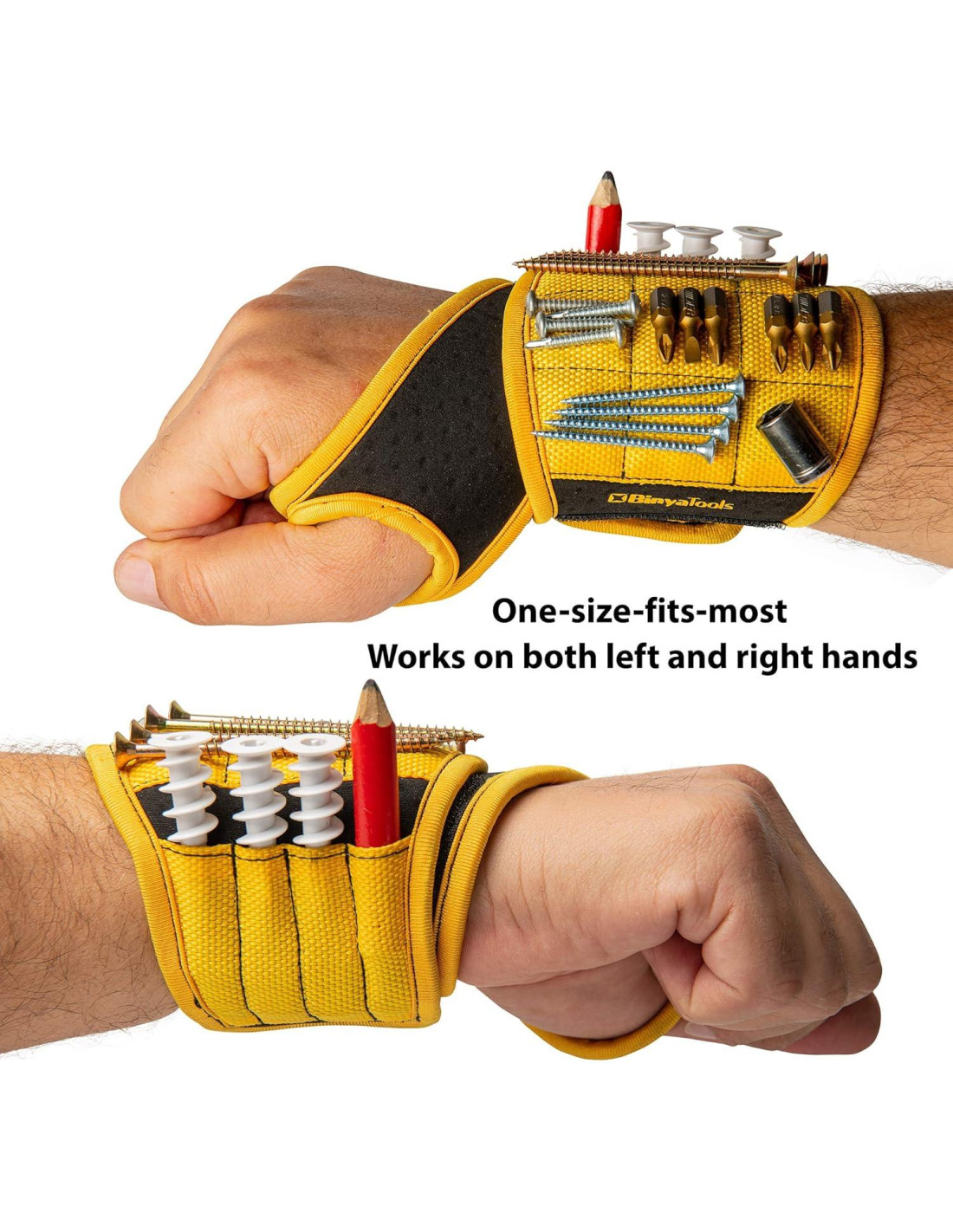 - MANTENIMIENTO EN SU LUGAR - Este nuevo y original diseño previene la rotación de la correa y evita que se deslice hacia arriba y hacia abajo en tu brazo. Una vez que hayas colocado tus herramientas en los imanes, permanecerán en su lugar sin tener que ajustarlo todo el tiempo